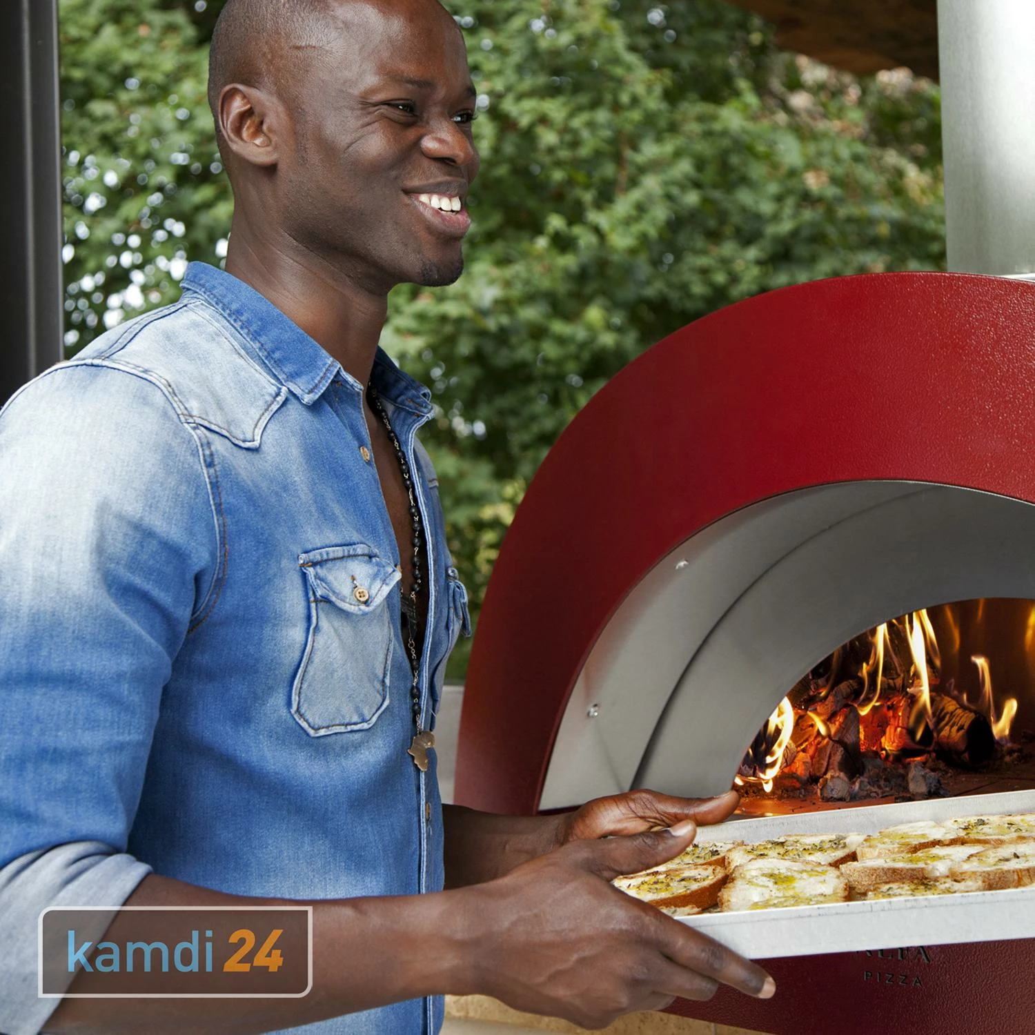 Für maximalen Pizzagenuss im heimischen Garten sorgt der aus der italienischen Manufaktur . Auf der riesigen Backfläche aus feuerfestem bereiten Sie in nur wenigen Minuten bis zu fünf Pizzen gleichzeitig zu. Alternativ können Sie auch 5 kg Brot pro Backvorgang verarbeiten oder genießen leckeres Gebäck und Kuchen aus Ihrem Pizzaofen. Neben diesen Köstlichkeiten garen Sie mit natürlich auch Fisch, Fleisch und Gemüse. Ein praktischer Helfer hierbei ist der zusätzlich erhältliche .