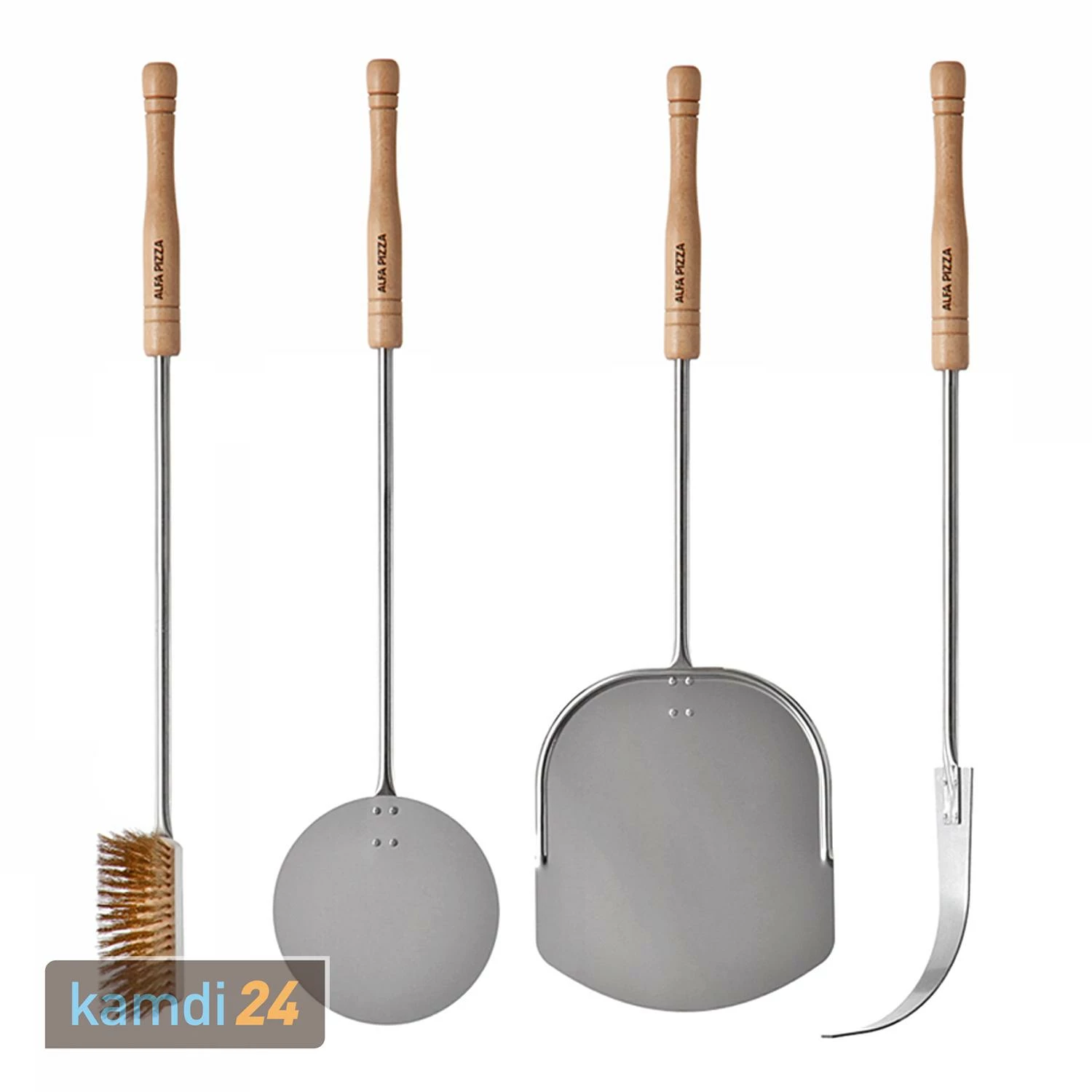 Bestens ausgerüstet zum Pizza backen sind Sie mit dem von . Das hochwertige und edle Set besteht aus einer Pizzaschaufel, einem Pizzaheber, einem Glutschieber und einer Reinigungsbürste. Die Produkte zeichnen sich besonders durch Robustheit, leichte Handhabung und einfache Reinigungsmöglichkeit aus. Sie sind aus Edelstahl gefertigt und sehen dadurch nicht nur elegant aus, sondern sind auch stabil und lassen sich einfach reinigen. Die Holzgriffe liegen angenehm in der Hand und sorgen bei der Nutzung für einen hohen Komfort.