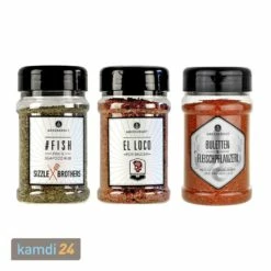 Perfekt als Mitbringsel bei der nächsten Grillparty oder als Grundausstattung für die WG: Das enthält drei hochwertige in praktischen Streudosen, mit denen sich ein tolles Partybuffet zaubern lässt. Fleisch, Fisch, Kräuterbutter oder Taco-Dip – da findet jeder Gast etwas nach seinem Geschmack!