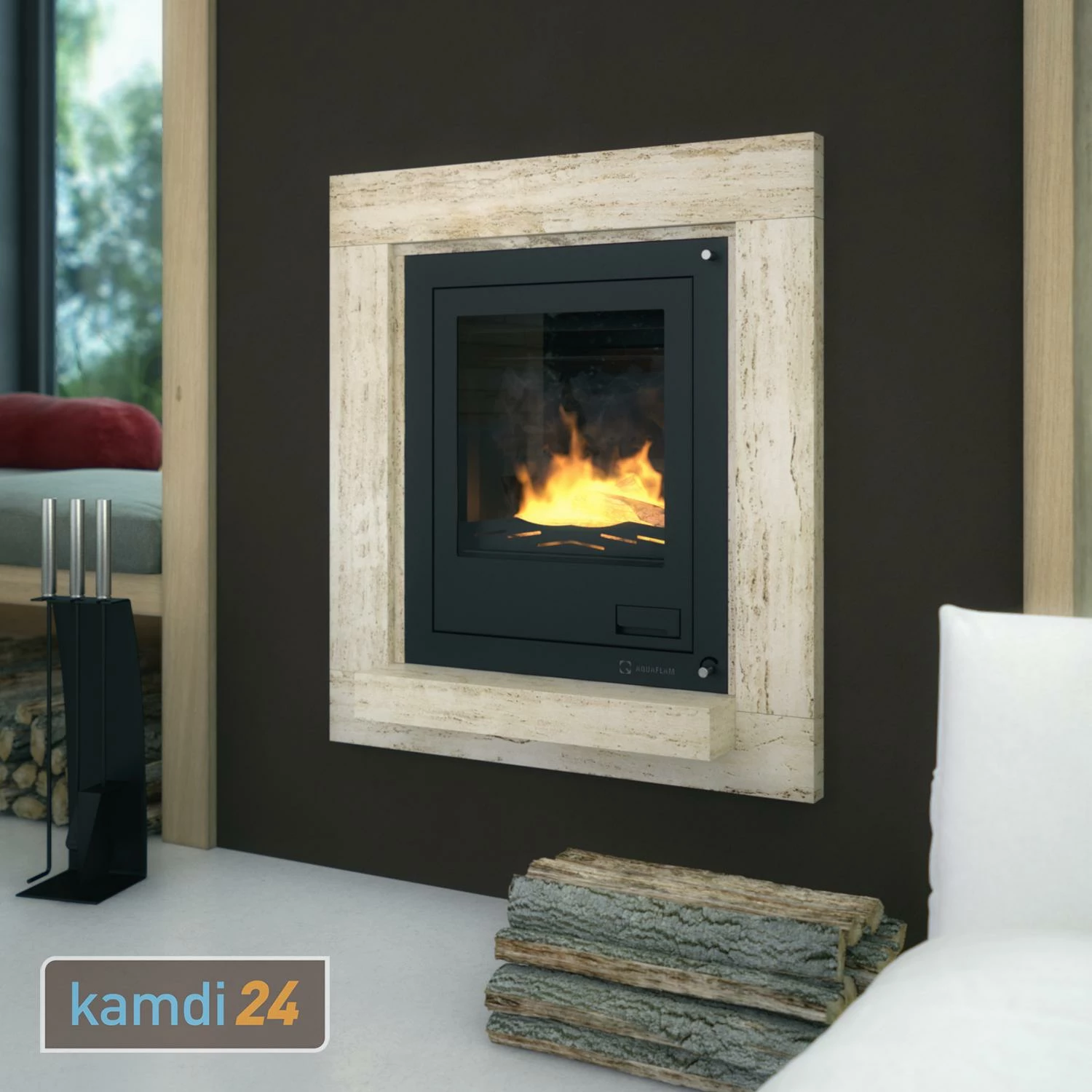 Wir führen die Aquaflam-Kamineinsätze auch in den Leistungsklassen , und .