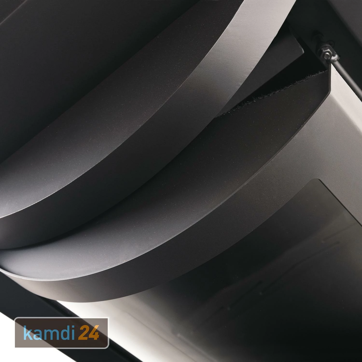 Die gebogene Panorama-Sichtscheibe verleiht dem Kamineinsatz eine edle Wirkung und gibt zugleich einen tollen Blick auf das Flammenspiel frei. ist in unserem Shop darüber hinaus auch mit oder mit erhältlich, sodass Sie die Wahl haben, welche Scheibenform am besten zu Ihrer Aufstellsituation passt.