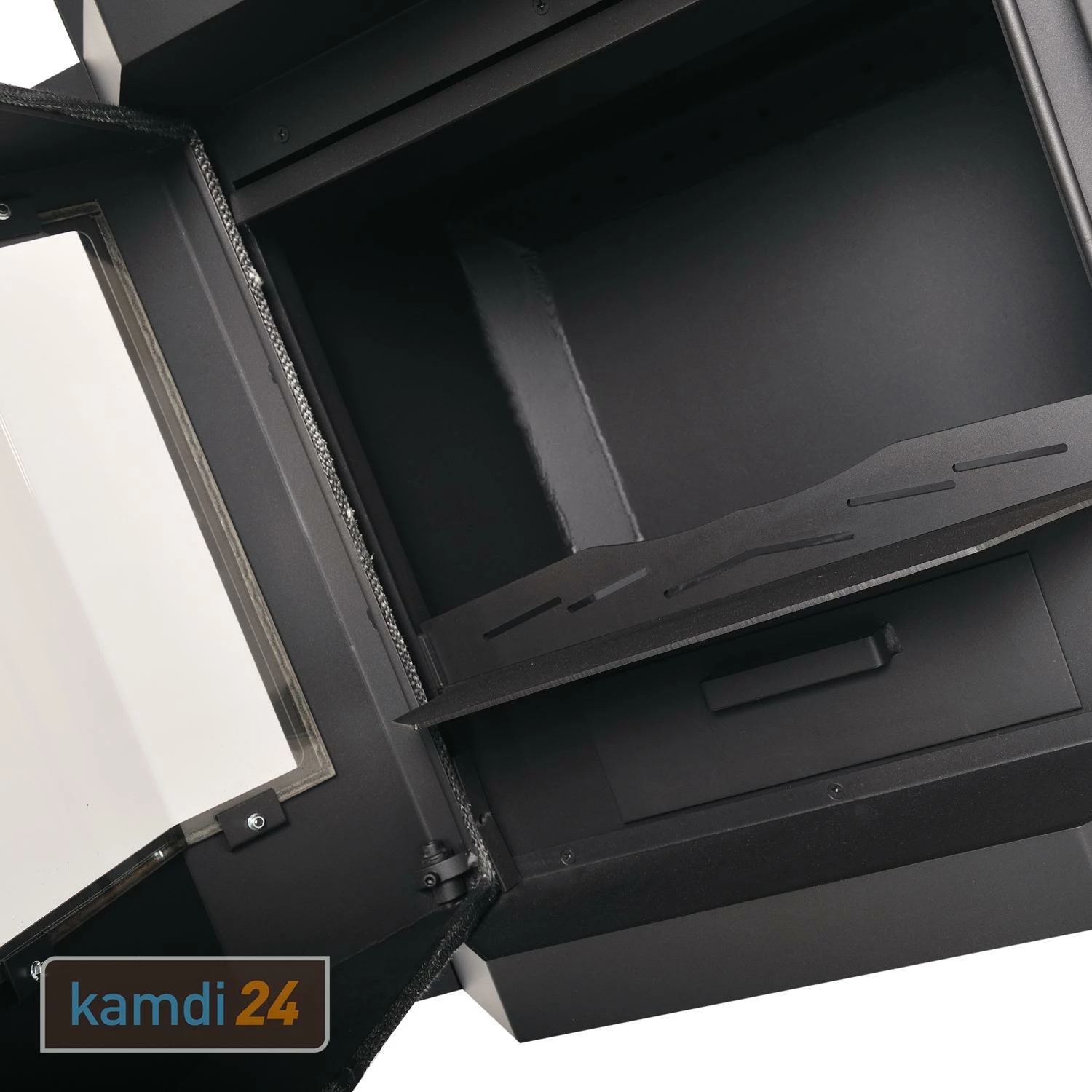 Für Puristen und Liebhaber der klassischen Verbrennungsluftsteuerung ist auch mit manueller Steuerung erhältlich. Die Regelung der Luftzufuhr erfolgt in diesem Fall über einen Zughebel unter der Brennraumtür. Um mit manueller Steuerung zu kaufen, wählen Sie die entsprechende Variante im Varianten-Menü aus.
