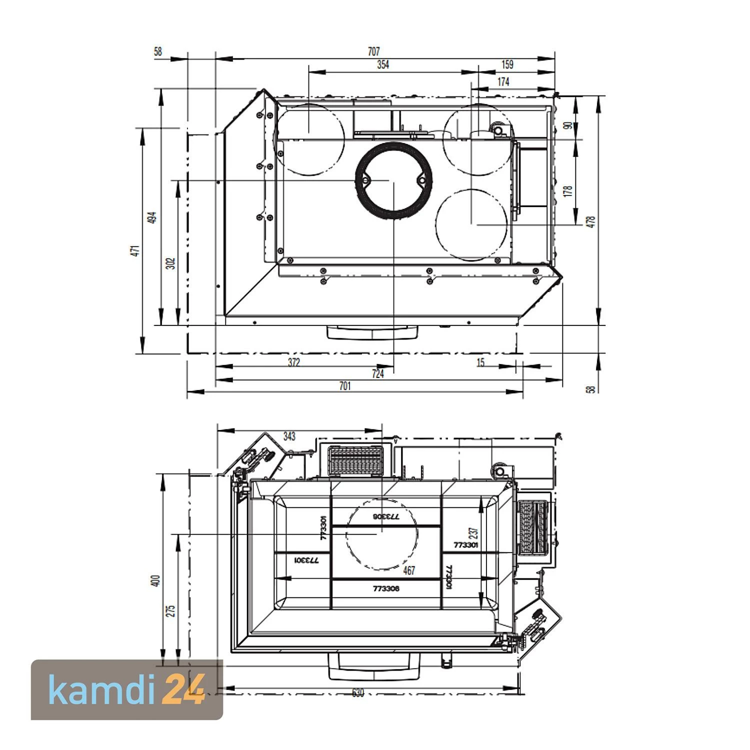 Die Verkleidung der Brennräume aller Austroflamm-Kamineinsätze besteht aus Keramott, das ein ausgezeichnetes Verhältnis zwischen Wärmedämmung und Wärmeleitung garantiert. Dadurch werden schnell hohe Temperaturen erreicht, die Ihren Wohnraum angenehm heizen und dabei eine saubere Verbrennung ermöglichen.