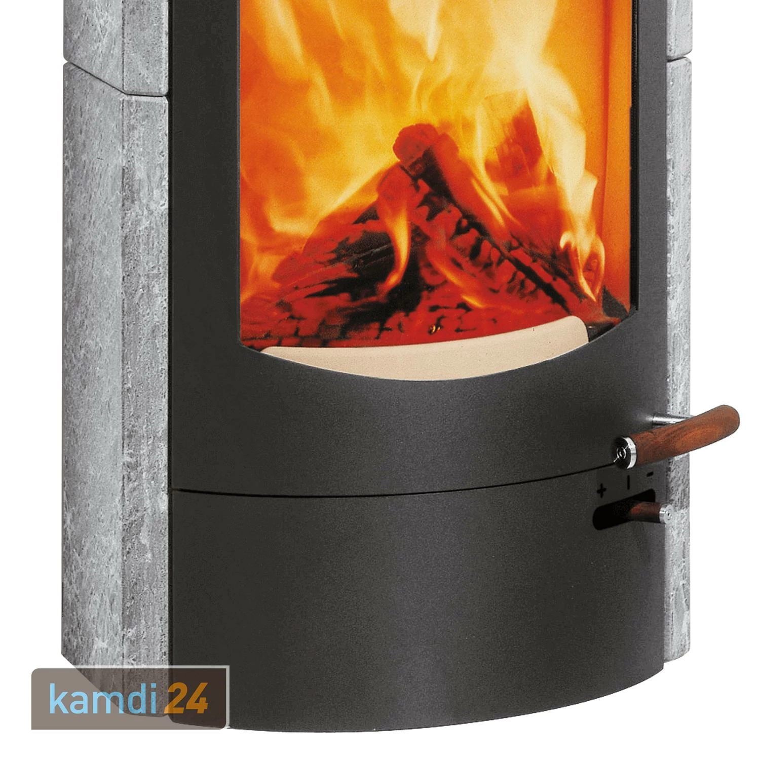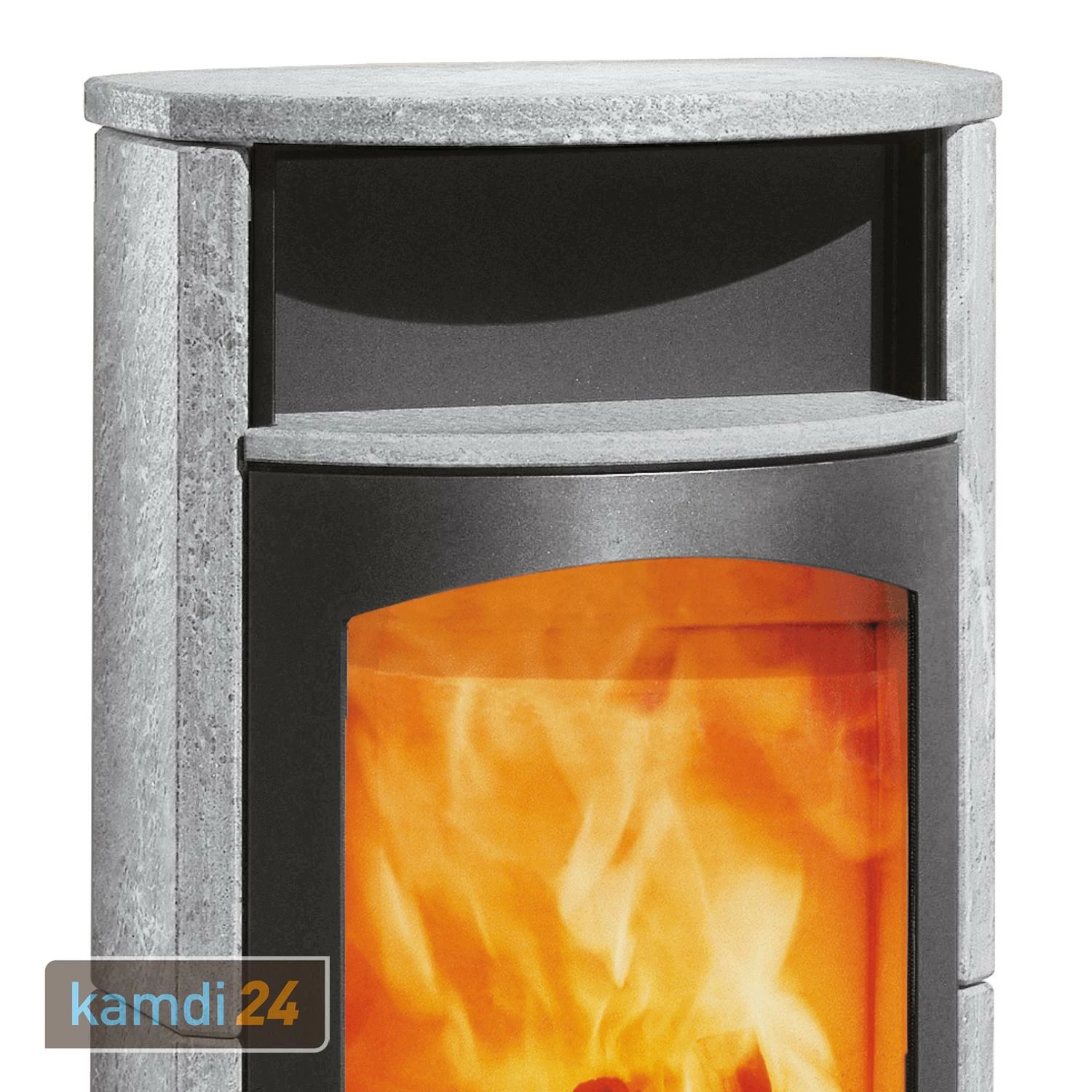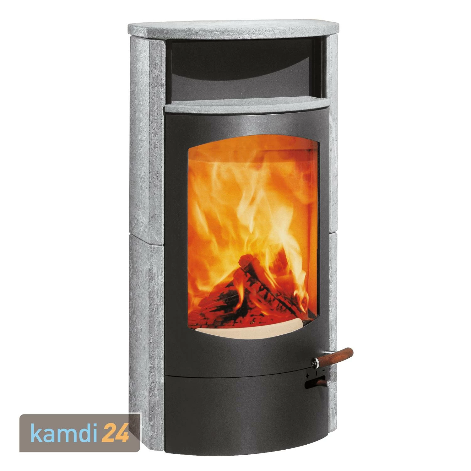 Der Korpus von ist mit Speckstein ummantelt, was dem eine zeitlose Eleganz verleiht. Warmhaltefach und Topplatte variieren zwischen Gusseisen, Speckstein und mattschwarzer Keramik. Zudem können Sie entscheiden, ob Sie den Kaminofen an der Ober- oder Rückseite an das Rauchrohr anschließen wollen. Treffen Sie Ihre Auswahl mit einem Klick über das Varianten-Menü.