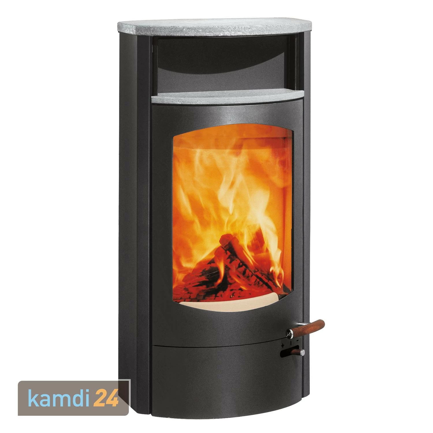 Der von ist ein zeitlos schöner, klassischer Holzkamin. Er kann Räume bis beheizen und besticht mit seinem praktischen und der großen Sichtscheibe, die dank stets einen tollen Blick auf das Kaminfeuer bietet. Die Verbrennungsluftzufuhr und somit die Intensität des Abbrands regeln Sie bequem über einen kombinierten Schieberegler rechts unter dem Brennraum. Der Regler sowie der Griff der Brennraumtür sind aus gefertigt und fallen schnell als hochwertige Details ins Auge.