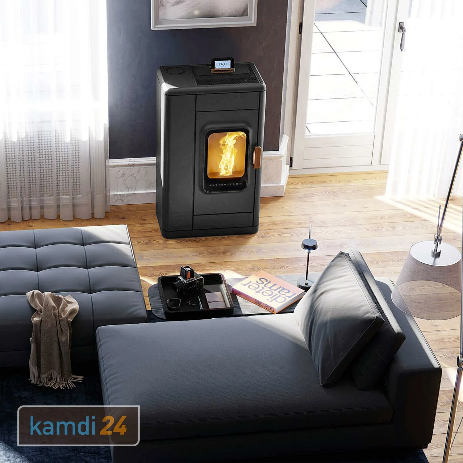 Das integrierte WLAN-Modul erlaubt es Ihnen, den Pelletofen in Ihr bestehendes Drahtlosnetzwerk einzubinden. Mit der zugehörigen App “PelletControl” (iOS oder Android) steuern Sie Ihr Pelletgerät via Smartphone von überall aus und genießen maximale Freiheit.