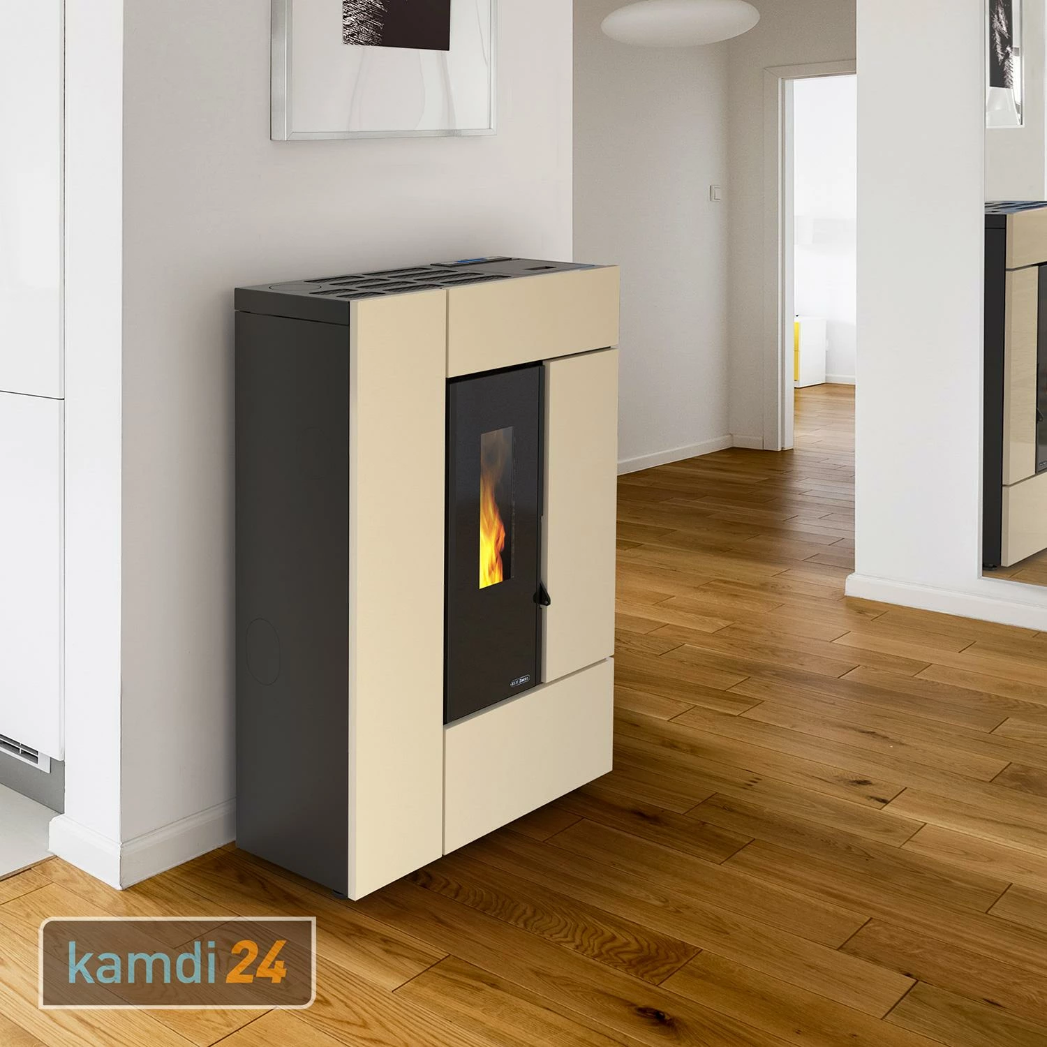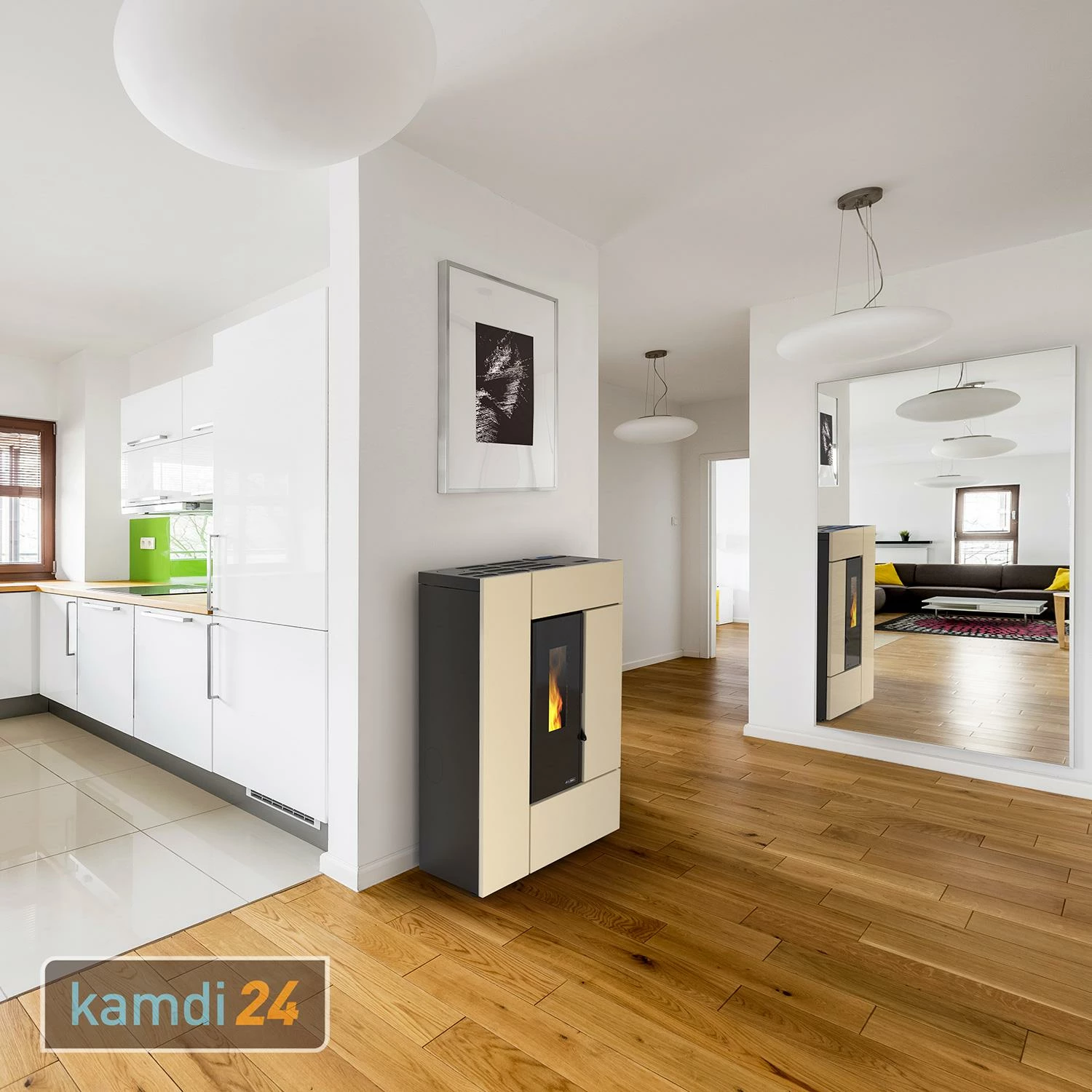 Das schlichte und geradlinige Design wird durch farbige Flächen aus Stahl abgerundet. Im kamdi24-Shop erhalten Sie den Ofen in den Farben Bordeaux und Elfenbein. Wählen Sie Ihren Favoriten über das Varianten-Menü.