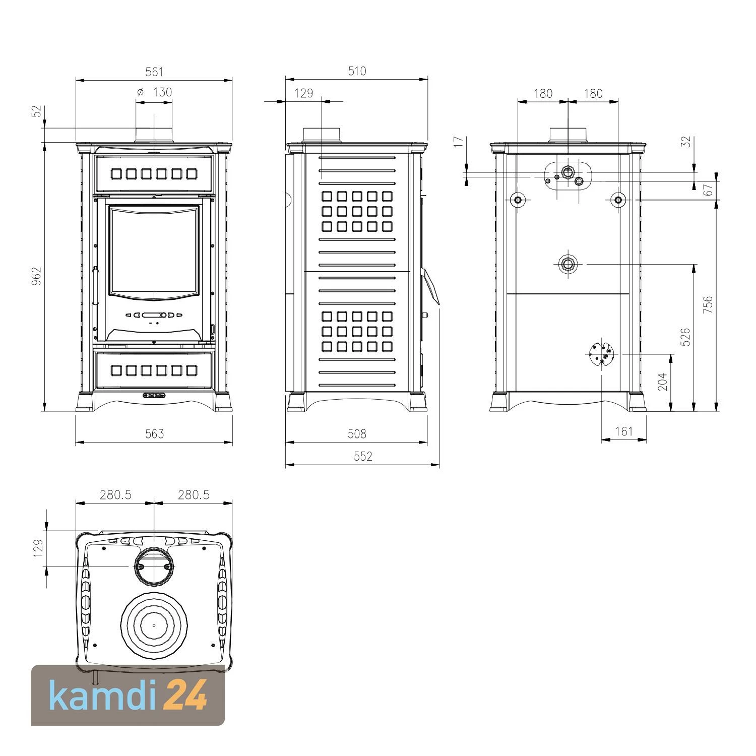 Der des italienischen Herstellers beheizt mit einer ein Raumvolumen von . Er wird mit Scheitholz befeuert. Mit dem Ofen Termo Carlotta können Sie nicht nur den Aufstellraum, sondern auch weitere Räume beheizen.