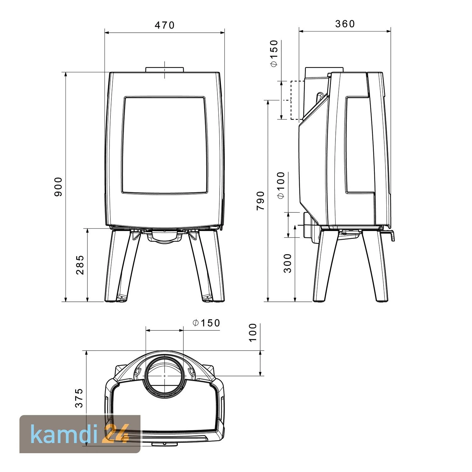 Mit können Sie von fast allen Ecken des Raumes einen Blick auf das Feuer werfen, denn der Kaminofen verfügt nicht nur über eine große Frontscheibe, sondern auch über Sichtscheiben auf beiden Seiten.
