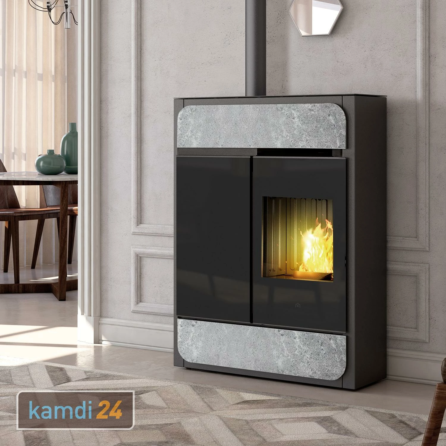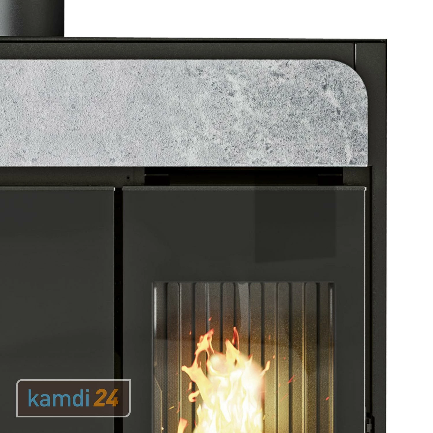 Flach, klare geradlinige Kontur, elegant: Der von beheizt mit Räume bis zu einem Volumen von und hält sich dabei mit nur dezent zurück. An der Hinterseite des Ofens befindet sich ein Anschluss zur . Damit ist es Ihnen möglich, gleichzeitig auch angrenzende Räume mit dem Pelletofen zu beheizen. Das große Sichtfenster gibt den Blick in den Brennraum und auf das Spiel der Flammen frei.