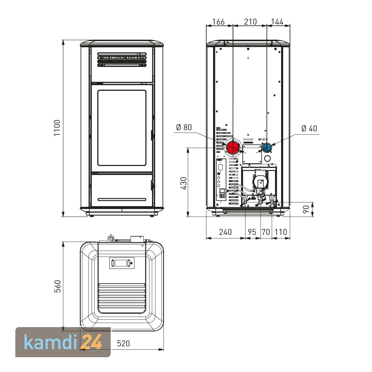ist außerdem mit vielen weiteren technischen Details ausgestattet: überwacht automatisch die Verbrennung, um den Brennstoff optimal auszunutzen. Das des Ofens ist , so können Sie das Flammenspiel auch ganz in Ruhe genießen. Wenn Sie wollen, können Sie den Ofen mit dem ganz bequem per steuernauch eine Tages- und Wochen-Zeitprogrammierung ist möglich. Zur Ausstattung gehört ebenfalls ein Hydraulikbausatz mit geschlossenem Ausdehnungsgefäß, Umwälzpumpe und Überdruckventil.