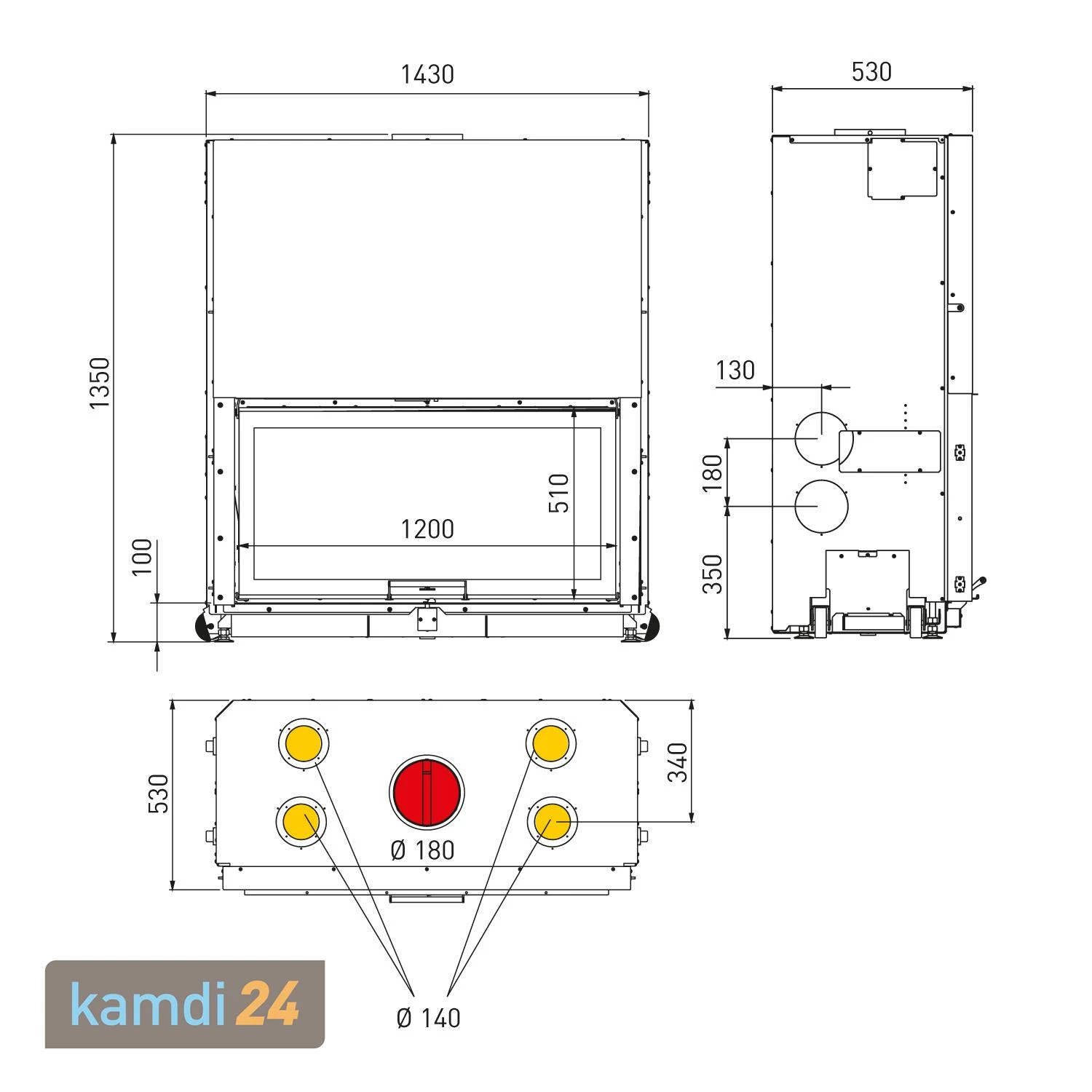 Auf der Oberseite von befinden sich vier Anschlüsse zur Warmluftkanalisierung. Über diese Anschlüsse können Sie die produzierte Wärme entweder in den Aufstellraum oder in angrenzende Räume leiten und so Ihr Haus effizient beheizen.
