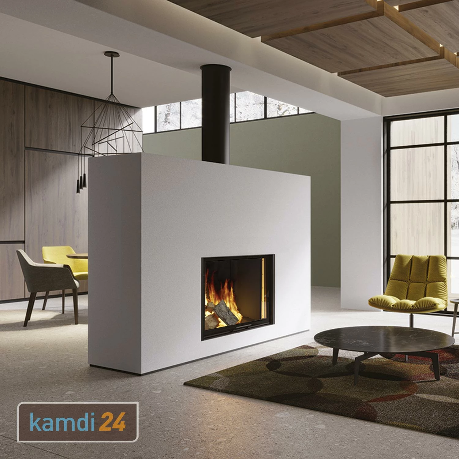 beheizt bis zu Raumvolumen mittels natürlicher Konvektion und verfügt über zwei Anschlüsse zur . Die produzierte Wärme kann damit sowohl in den Aufstellraum als auch in angrenzende Räume geleitet werden. Die Verbrennung lässt sich über einen Einstellhebel regulieren und ist mit einem Nachbrennsystem ausgestattet. Zur leichten Installation verfügt der Kamineinsatz über vier Rollen, so lässt er sich während des Aufbaus leichter bewegen.