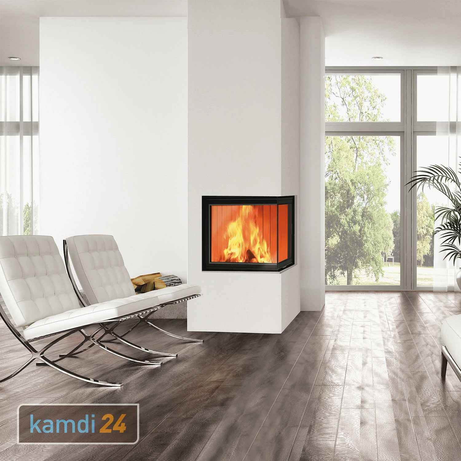Genießen Sie das Feuer aus verschiedenen Perspektiven: Die Sichtscheiben von verlaufen über zwei Seiten, sodass Sie die Flammen sowohl von vorn als auch seitlich im Blick haben.