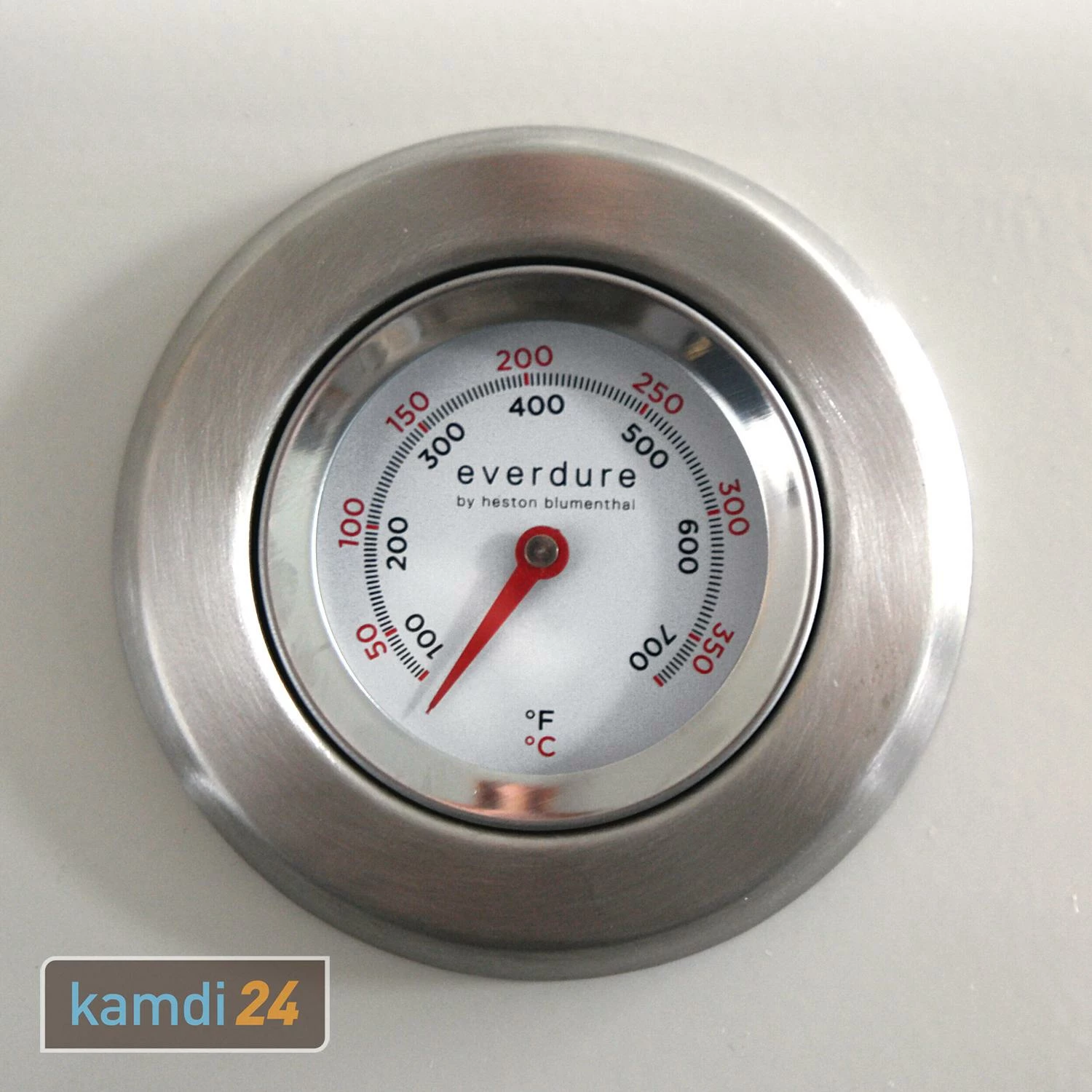 In geöffnetem Zustand lässt sich auf klassisch direkt grillen. Der bis zu 10 mm starke Aluminium-Deckel ermöglicht aber auch das indirekte Grillen in exzellenter Weise. Die abgerundeten Ecken des Deckels lassen die Konvektionshitze im geschlossenen optimal zirkulieren, sodass der gleiche Effekt erzielt wird wie in einem leistungsstarken Umluftofen. Dabei sorgt eine umlaufende Lippe am Deckelrand dafür, dass die heiße Luft nicht durch den Spalt zwischen Deckel und Grillwanne entweichen kann. Über das Deckelthermometer behalten Sie die Temperatur im Garraum immer im Auge.