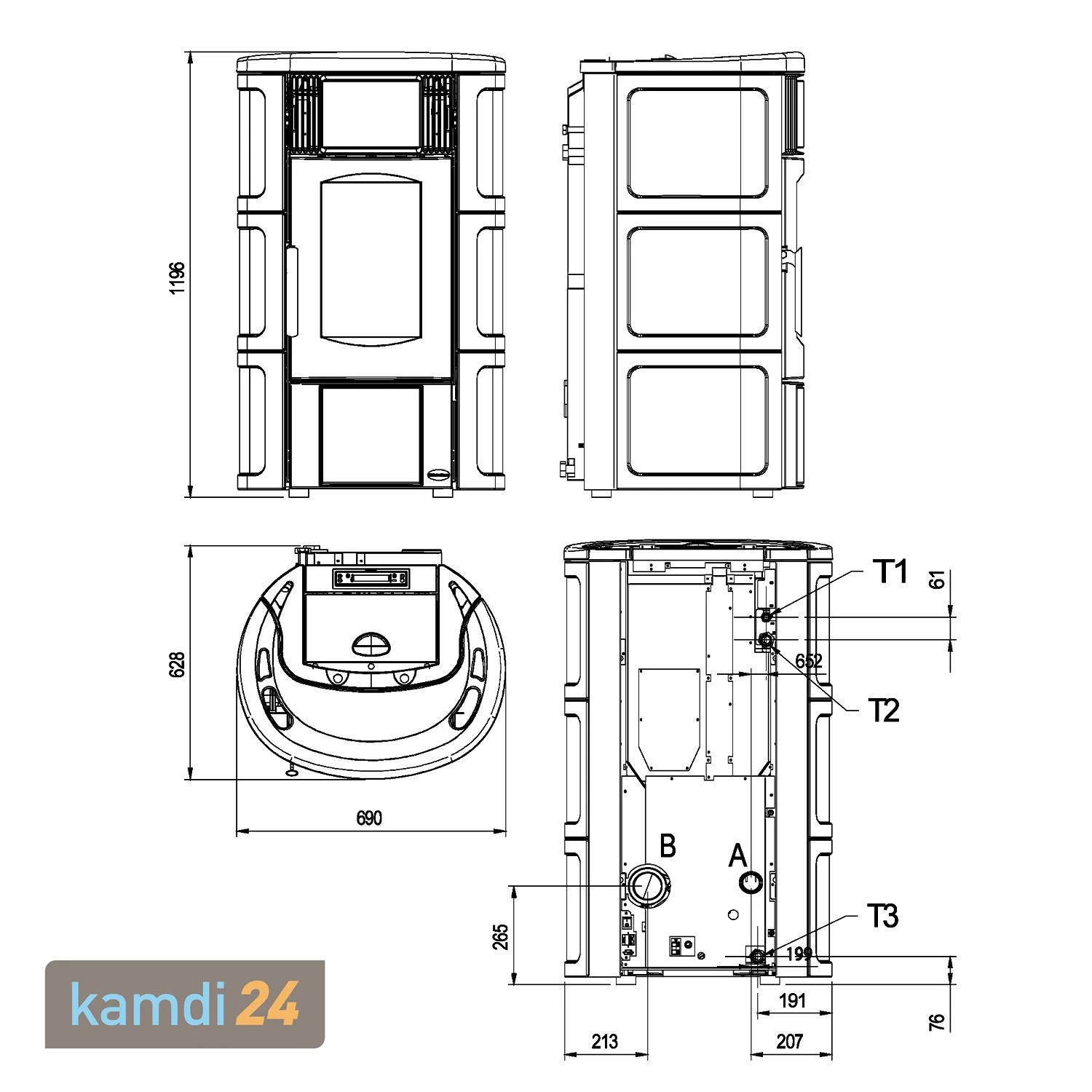 Ein moderner gestaltet wie ein klassischer Kachelofen: Der von überzeugt auf ganzer Linie. Das beheizbare Raumvolumen ist bis zu möglich. Die integrierte dient dabei zum Anschluss an Ihre Zentralheizung und zur Einbindung des Ofens in die Brauchwassererwärmung. Bei all diesen Funktionen punktet der Ofen mit einem großen Gemütlichkeitsfaktor und geringer Größe, wodurch er sich gut in jeden Wohnraum integrieren lässt. Bei der hochwertigen Verkleidung aus haben Sie die Wahl zwischen und bestimmen Ihren Favoriten über das .