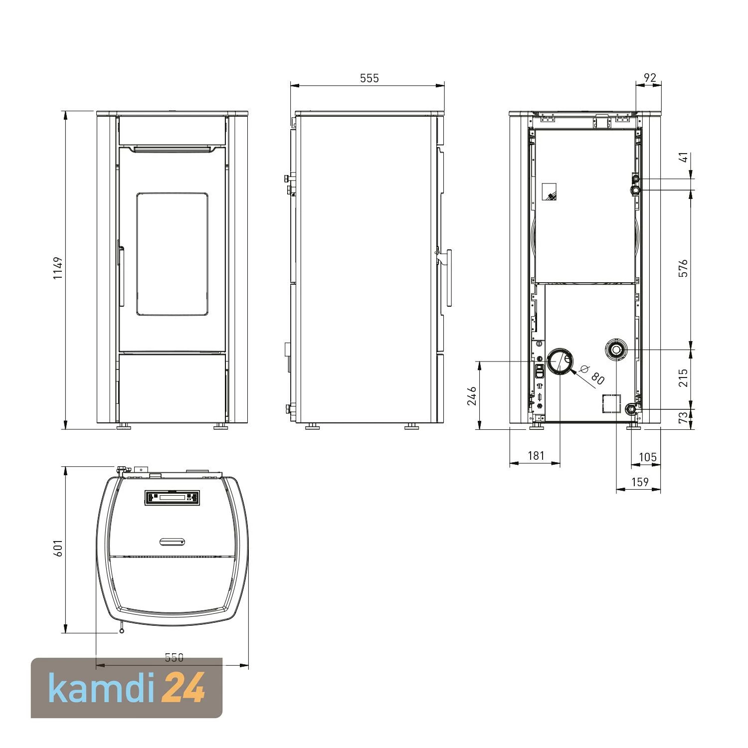 Über den 16-Liter-Wasserwärmetauscher können Sie an Ihre Zentralheizung und die Brauchwassererwärmung anschließen. Im Ofen ist außerdem ein 8-Liter-Ausdehnungsgefäß verbaut.