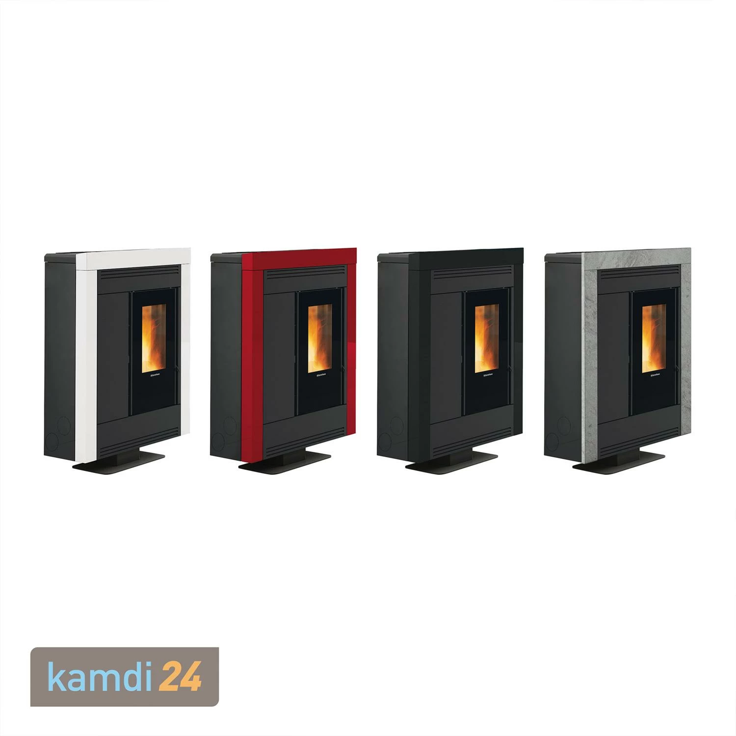 Die äußere Verkleidung besteht bei drei Modellen aus lackiertem Stahl in Weiß, Bordeaux oder Schwarz (Steel EVO) sowie aus Naturstein (Petra EVO) – Ihren Favoriten können Sie über das Varianten-Menü auswählen.
