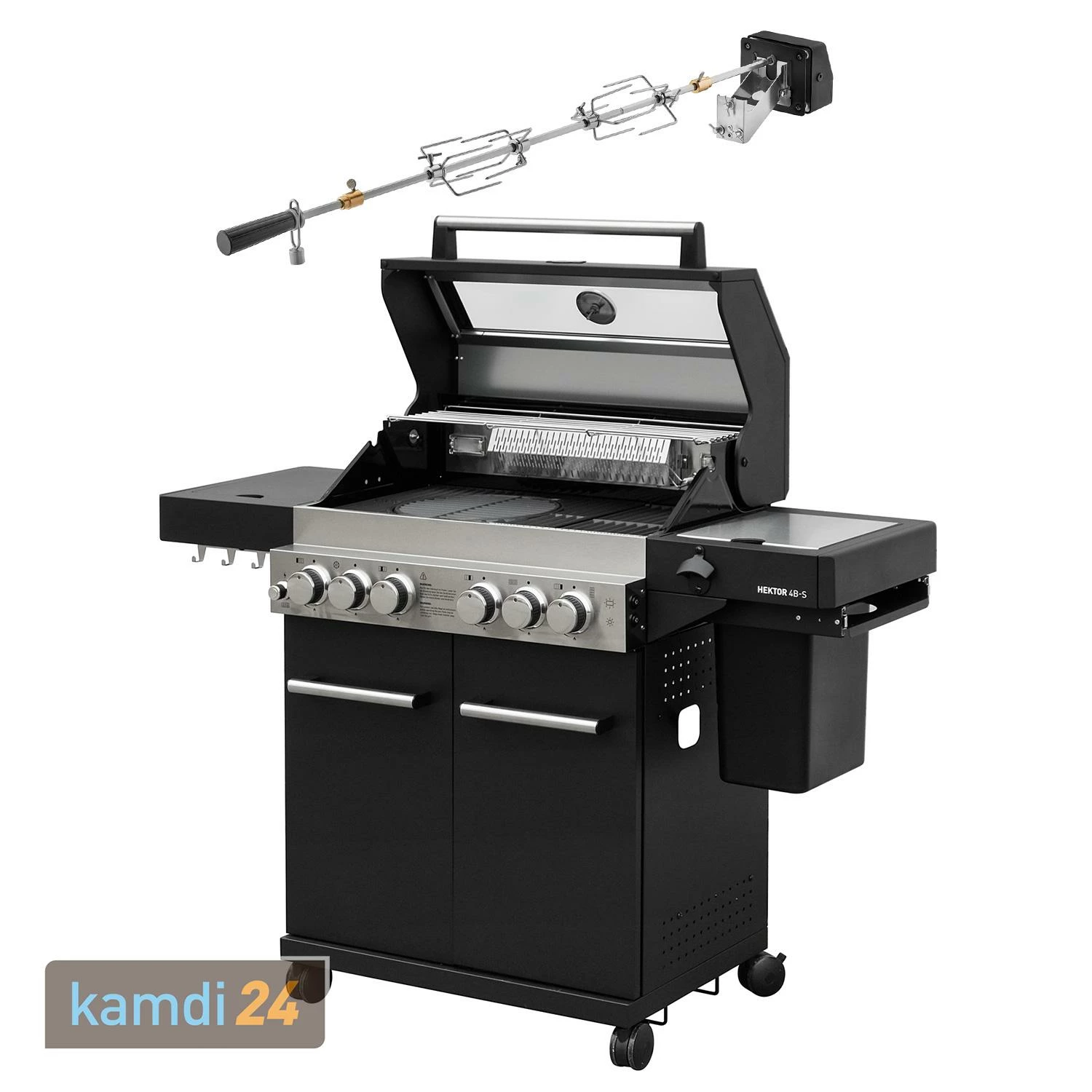 Im von Hektor 4B-S können Sie die Gasflasche und weiteres Zubehör bequem verstauen. Haken zum Aufhängen von Grillbesteck und ein Flaschenöffner runden das Zubehör ab. Eine herausnehmbare Fettauffangschale erleichtert zudem die Reinigung nach dem Grillen. Diese und viele machen Hektor 4B-S zu einem unverzichtbaren Begleiter auf jeder Grillparty.