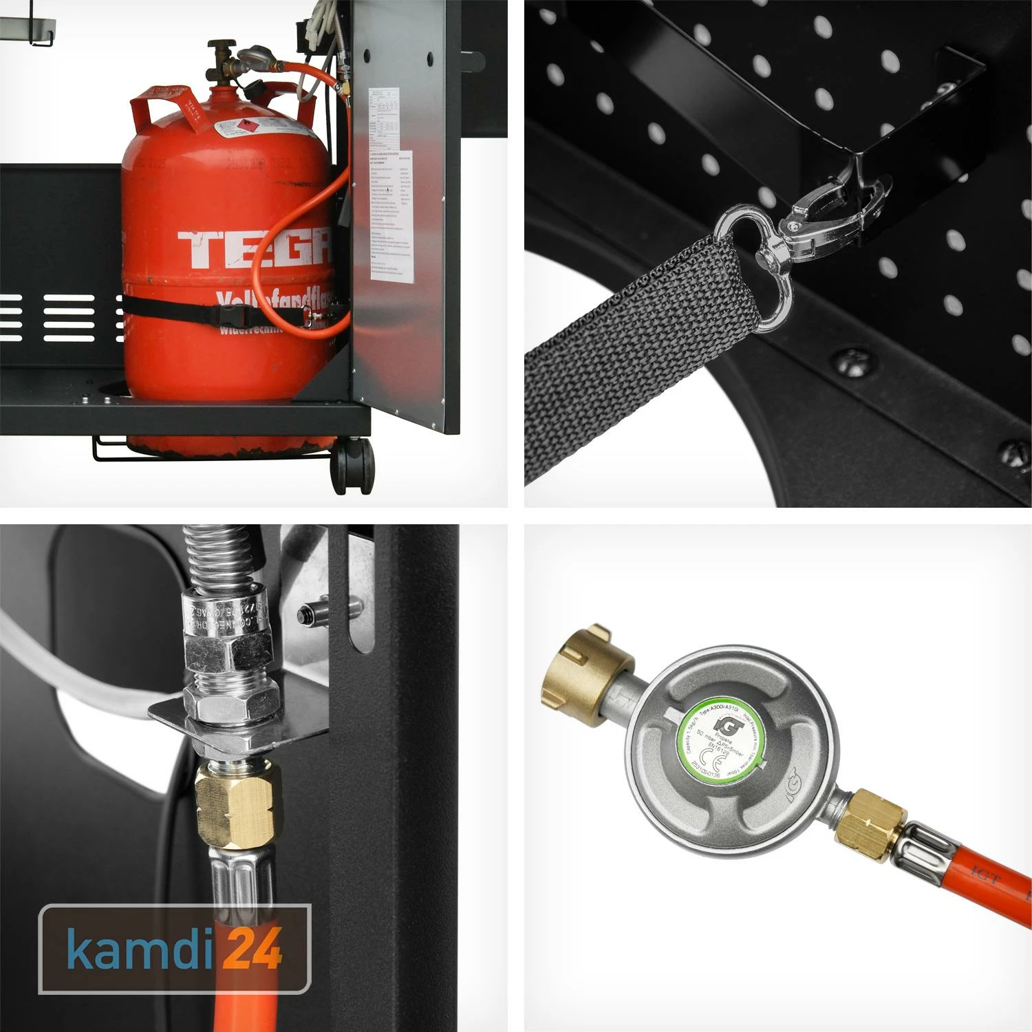 Im von Hektor 4B-S können Sie die Gasflasche und weiteres Zubehör bequem verstauen. Haken zum Aufhängen von Grillbesteck und ein Flaschenöffner runden das Zubehör ab. Eine herausnehmbare Fettauffangschale erleichtert zudem die Reinigung nach dem Grillen. Dies und viele machen Hektor 4B-S zu einem unverzichtbaren Begleiter auf jeder Grillparty.
