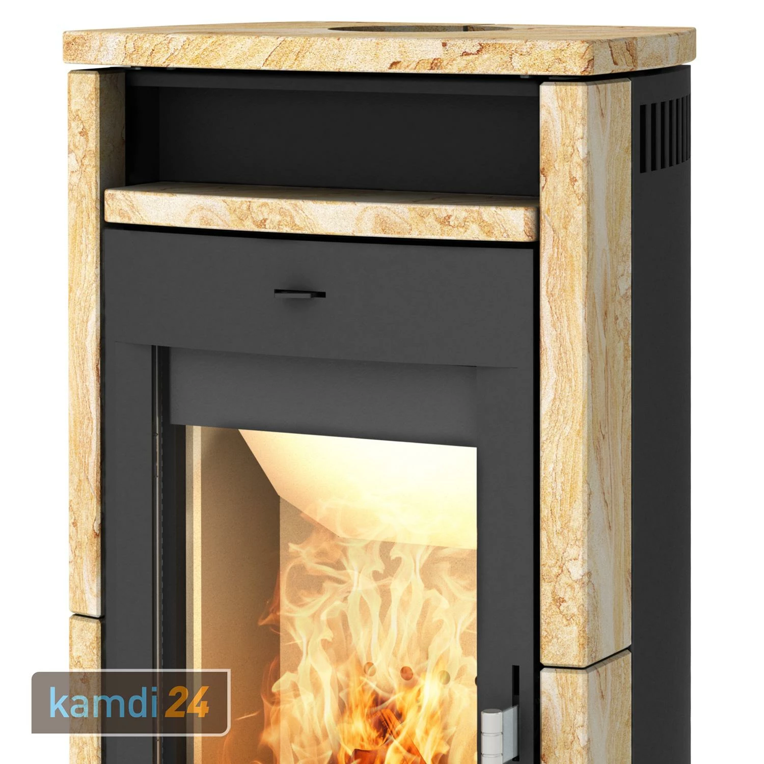 Klein, aber oho: So präsentiert sich der von . Der besitzt eine Seitenverkleidung aus Naturstein mit jeweils einzigartiger Maserung. Wählen Sie zwischen traditionellem Speckstein oder einer modernen Sandsteinverkleidung und treffen Sie Ihre Auswahl ganz einfach über unser Varianten-Menü. Die Sichtscheibe bietet dank der integrierten Scheibenspülung stets einen guten Blick auf das Feuer. Im kleinen Warmhaltefach über dem Brennraum können Tassen, Geschirr oder Speisen vorgewärmt bzw. auf Temperatur gehalten werden.