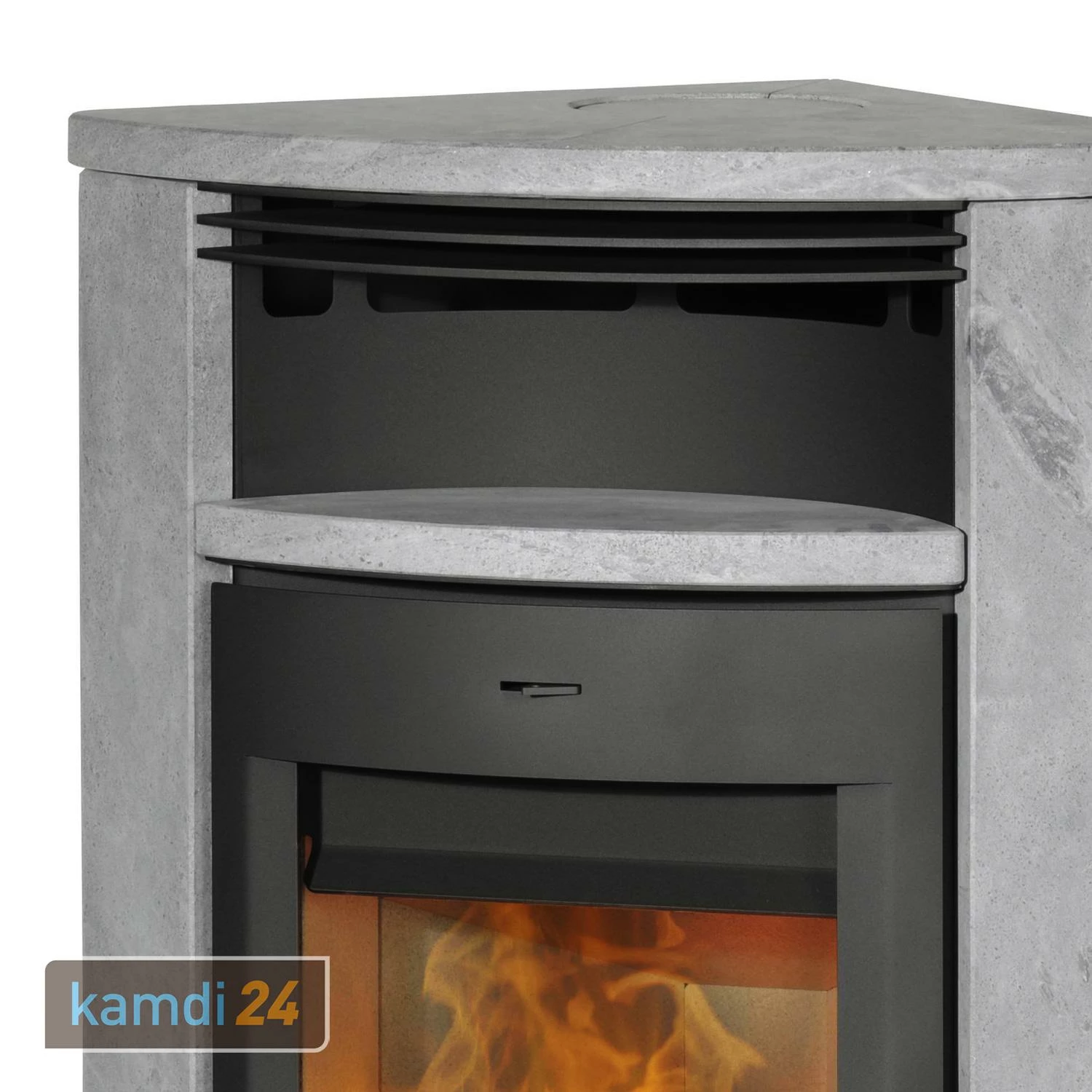 ist für die Aufstellung in einer Zimmerecke konstruiert. Das spart einerseits Platz und ermöglicht andererseits von jedem Punkt im Raum aus einen Blick auf das Feuer.