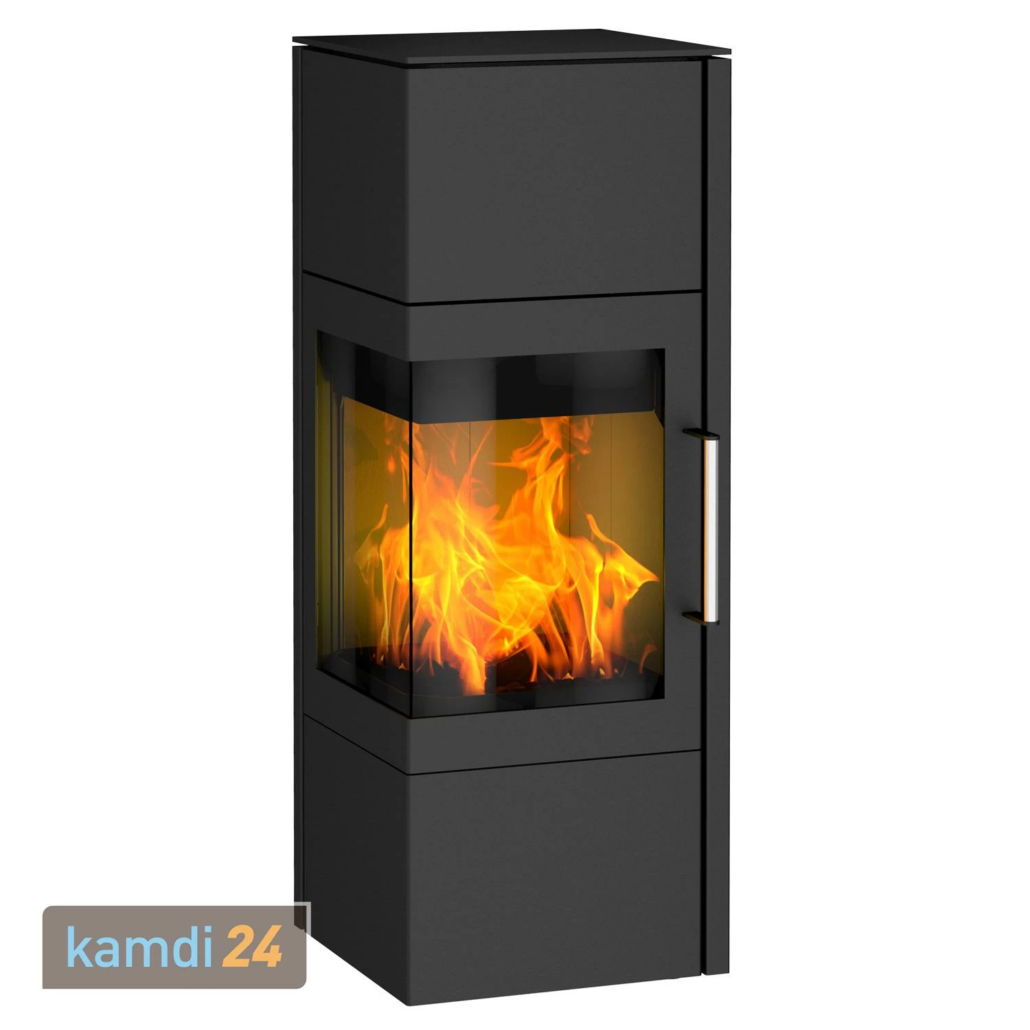 ist für die Aufstellung in einer Zimmerecke konstruiert. Das spart einerseits Platz und ermöglicht andererseits von jedem Punkt im Raum aus einen Blick auf das Flammenspiel. Durch die über Eck verlaufende Sichtscheibe wird das Feuer besonders eindrucksvoll in Szene gesetzt.