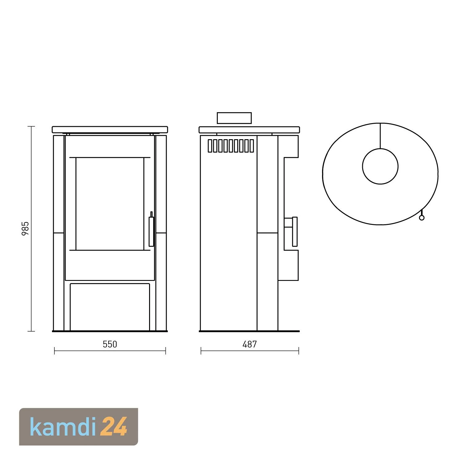 Den Ofen erhalten Sie in zwei unterschiedlichen Varianten. Der Korpus ist immer Stahl Schwarz. Dieser wird ergänzt mit Specksteinelementen – entweder bestehen die Topplatte und die Seitenverkleidung aus Speckstein oder nur die Topplatte. Wählen Sie aus, welches Modell Ihnen am besten gefällt.