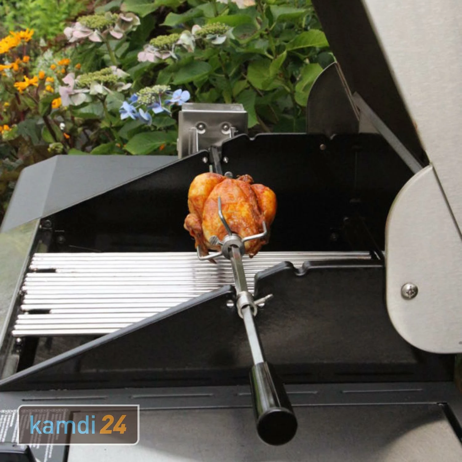 Sie lieben Brathähnchen? Dann ist der von für Ihren genau das Richtige für Sie! Die verfügt über einen 220 V Motor, welcher das Grillfleisch kontinuierlich in Bewegung hält und dadurch für ein gleichmäßig gebratenes Ergebnis bei Grillfleisch jeder Art sorgt. Neben Brathähnchen eignet sich der Grillspieß auch hervorragend für Gyros oder Spießbraten.