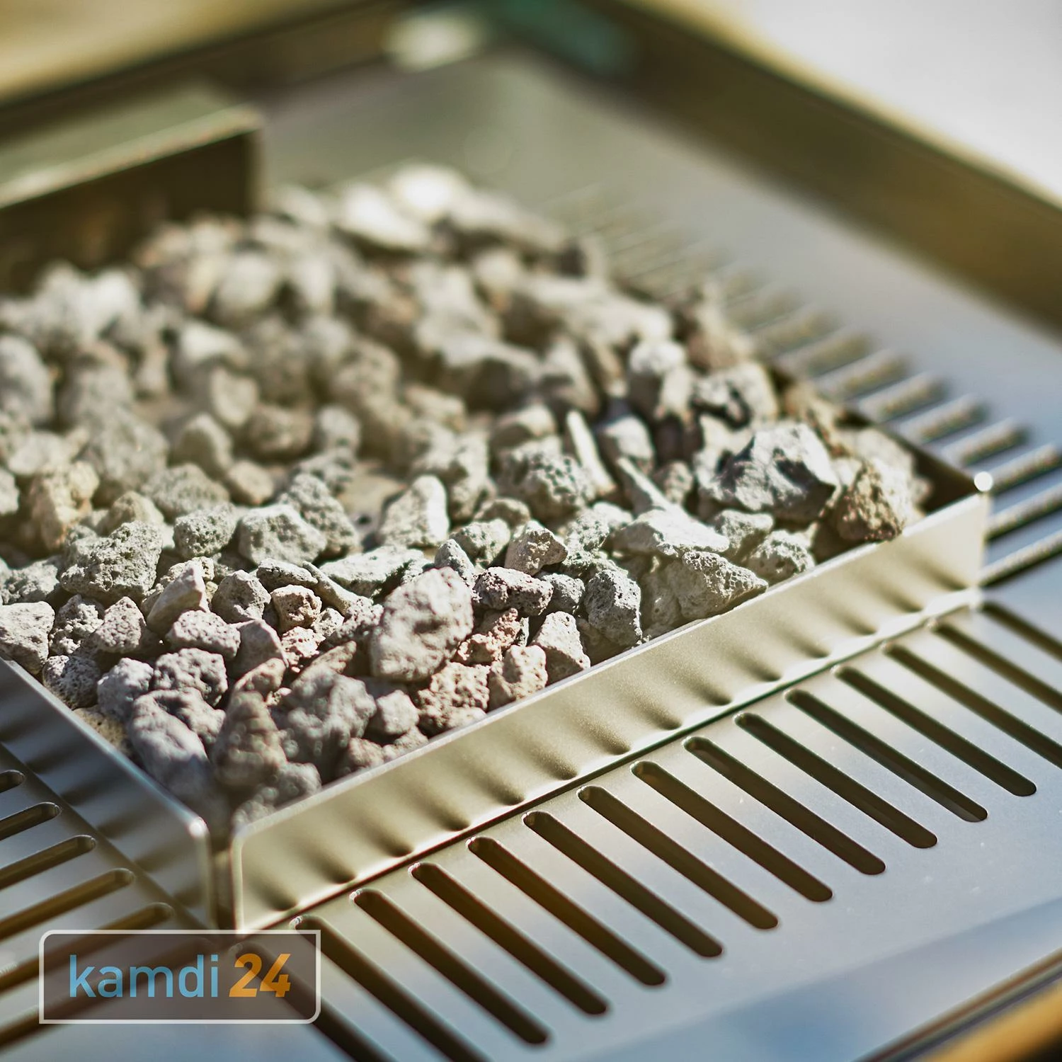 Mit und Platz für eine 11 kg Flüssiggasflasche sorgt Fuora Q etwa am Stück für ein stimmungsvolles Flammenbild. Die Intensität des Feuers und damit die Flammenhöhe lassen sich über einen Drehregler nach Ihren Wünschen regulieren. Die Gasflasche können Sie diskret hinter einer verbergen.