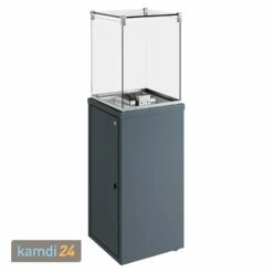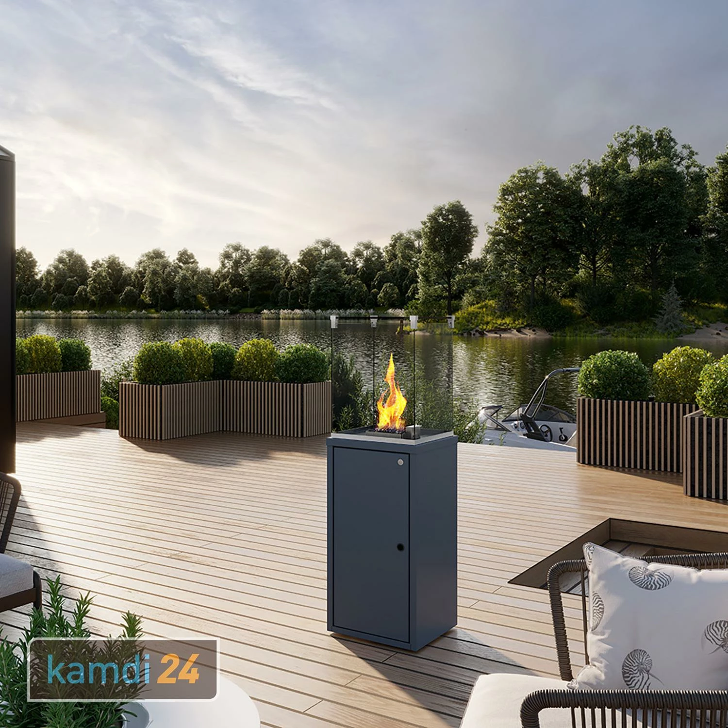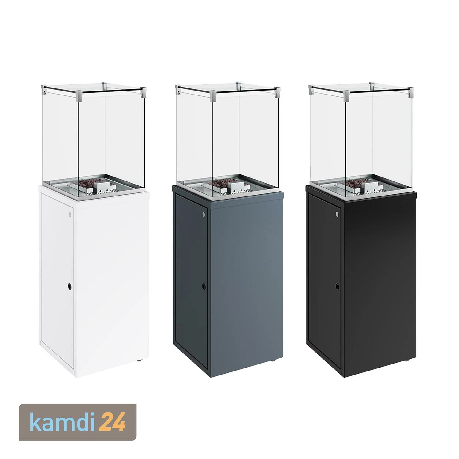 Der untere Teil von besteht aus rostfreiem Stahl und pulverbeschichtetem Aluminiumblech. Sie haben die Wahl zwischen einem weißen, einem schwarzen und einem anthrazitfarbenen Korpus, um den schicken Outdoor-Kamin genau auf Ihr Gestaltungskonzept abzustimmen. Nutzen Sie unser Varianten-Menü, um Ihr Lieblingsdesign auszuwählen.