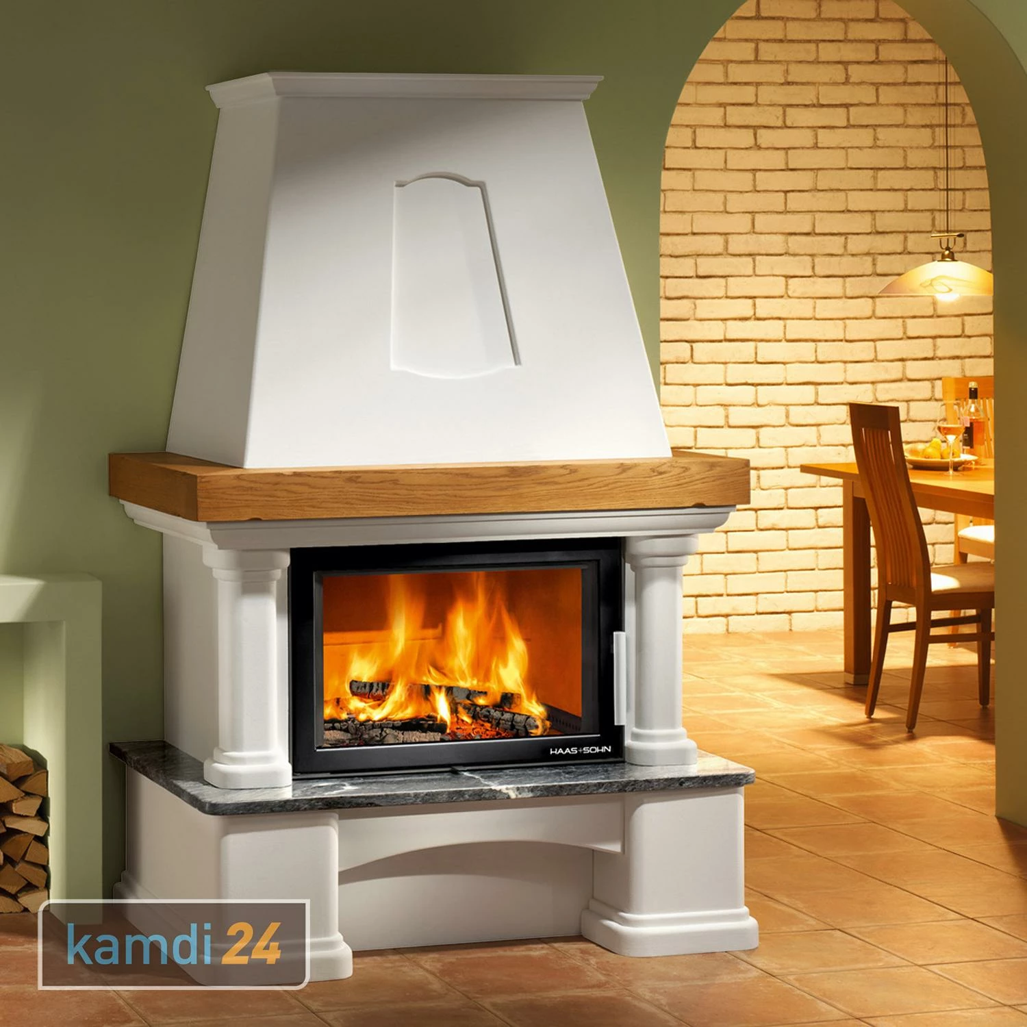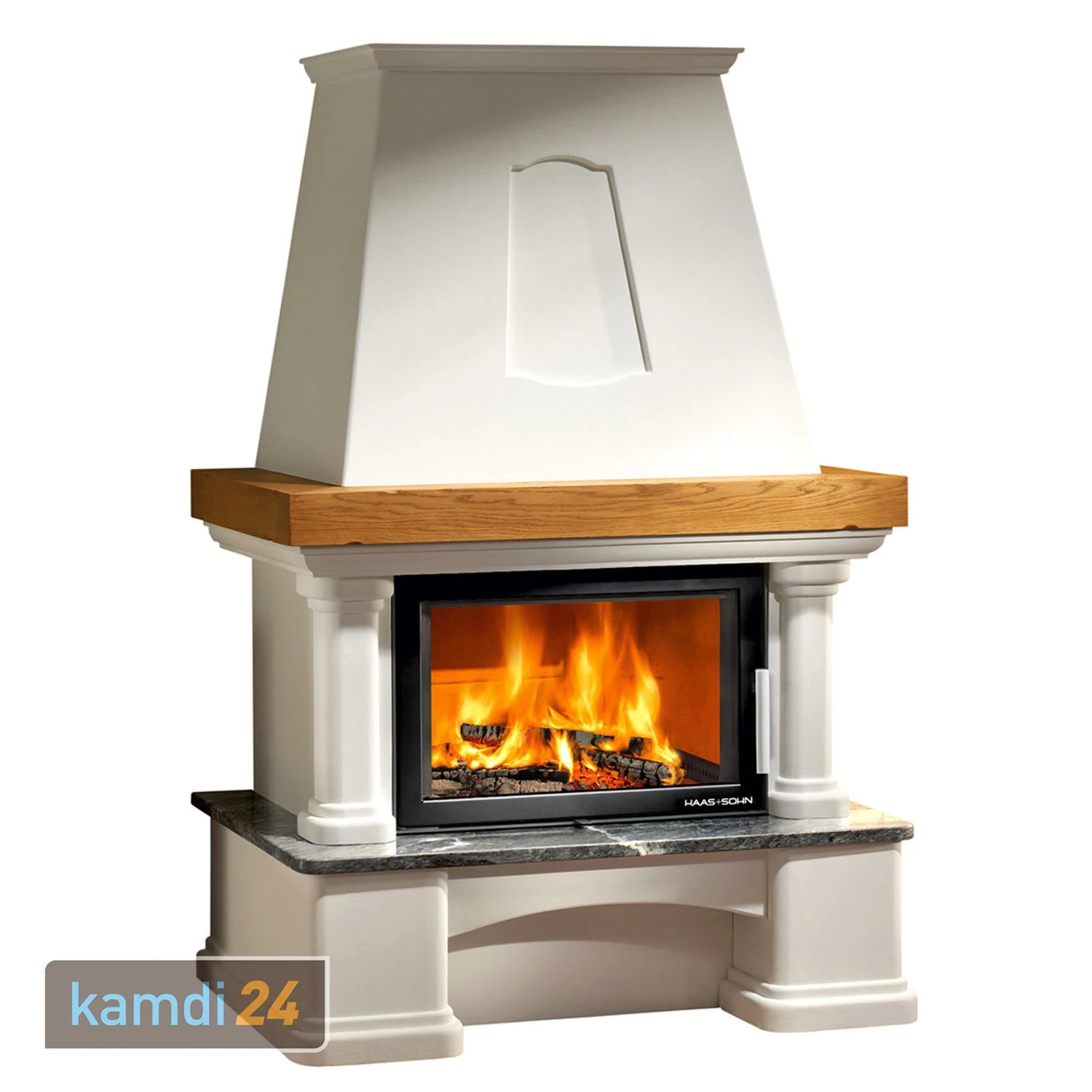 Der , bestehend aus dem Kamineinsatz Komfort IV und 13 Bauelementen, überzeugt durch sein klassisches Design. Er lässt er sich direkt an der Wand platzieren und versprüht Gemütlichkeit und Wärme. Durch die große Sichtscheibe hat man einen tollen Blick auf das Flammenspiel. Selbstverständlich ist auch dieses klassische Haas+Sohn Produkt mit modernster Heiztechnologie ausgestattet. Mit sorgt es in Ihrem Zuhause für wohlige Wärme.