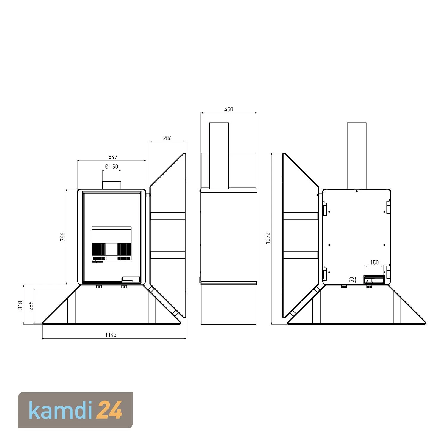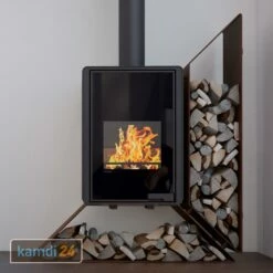 Der 9 kW starke Holzofen beheizt bis zu Raumvolumen. Er verströmt ein gemütliches Flair und bietet dank der integrierten Scheibenspülung lange eine ungetrübte Sicht auf die Flammen. arbeitet mit Primär-, Sekundär- und Tertiärluft, wodurch er für eine optimale Verbrennung sorgt. Durch die Konvektionswärme heizt der Ofen den Aufstellraum besonders schnell.