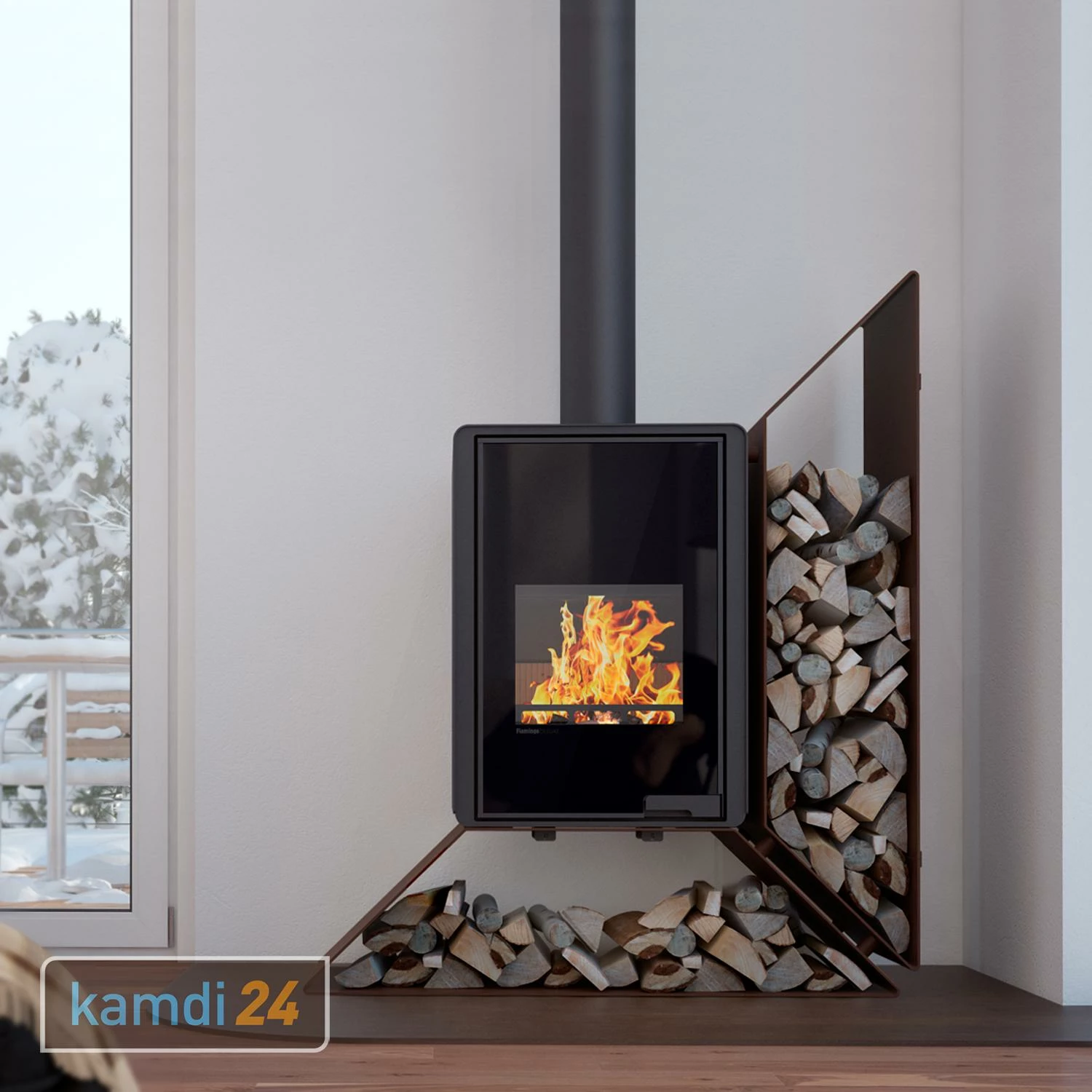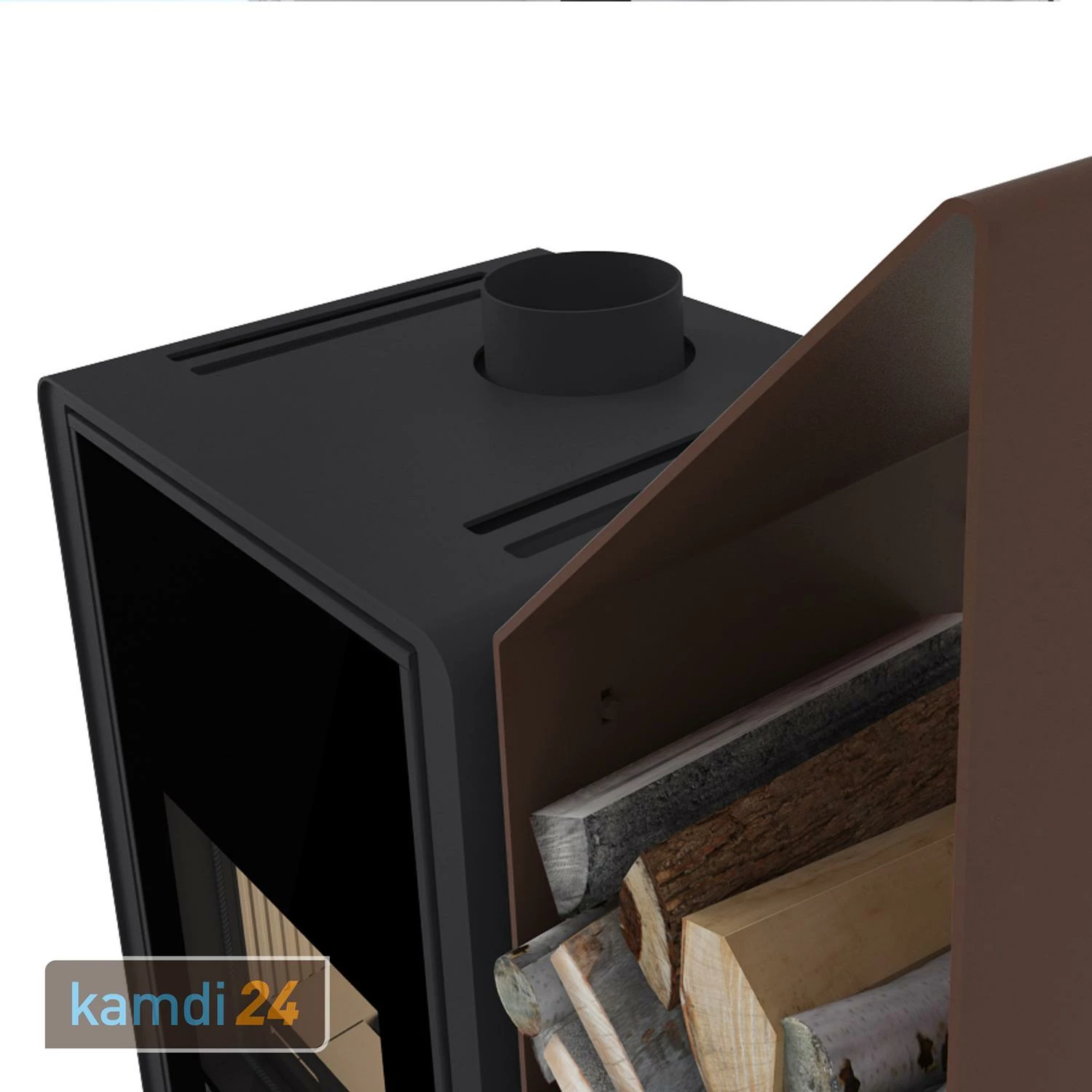 Der von ist ein . Er ist mit verkleidet und wirkt durch seine geradlinige Form besonders modern. Zusätzlich verfügt er über ein zweigeteiltes Design-Holzregal in welchem Sie stets Brennstoff-Nachschub lagern können. Das ist einerseits praktisch und andererseits werden die modernen Linien des Holzofens so durch ein rustikales Element ergänzt, wodurch ein ganz besonderes Flair erhält. Damit Ihr neuer Ofen perfekt in den Aufstellraum passt, können Sie über das Varianten-Menü sowohl aus verschiedenen Farben für das Regal wählen, als auch an welcher Seite des Ofens es sich befinden soll.