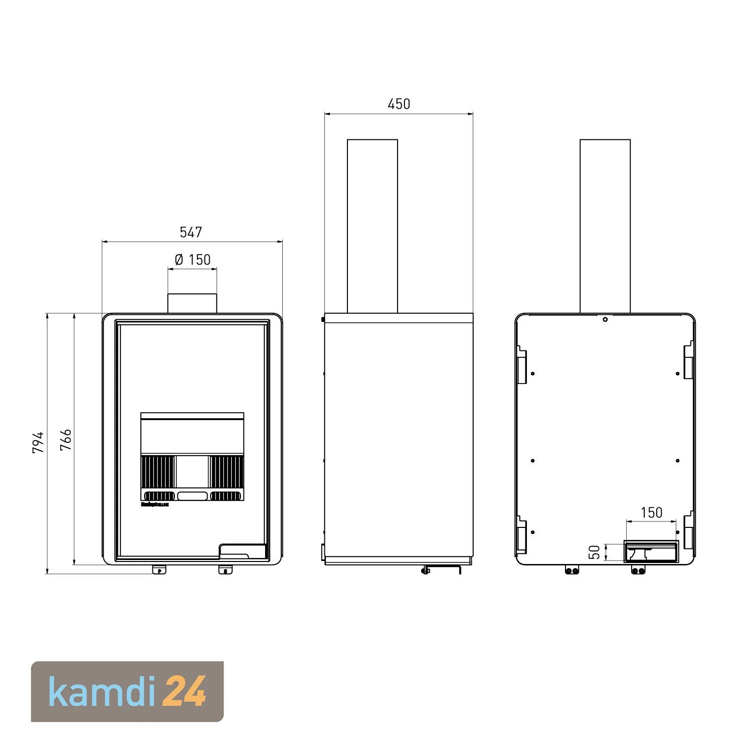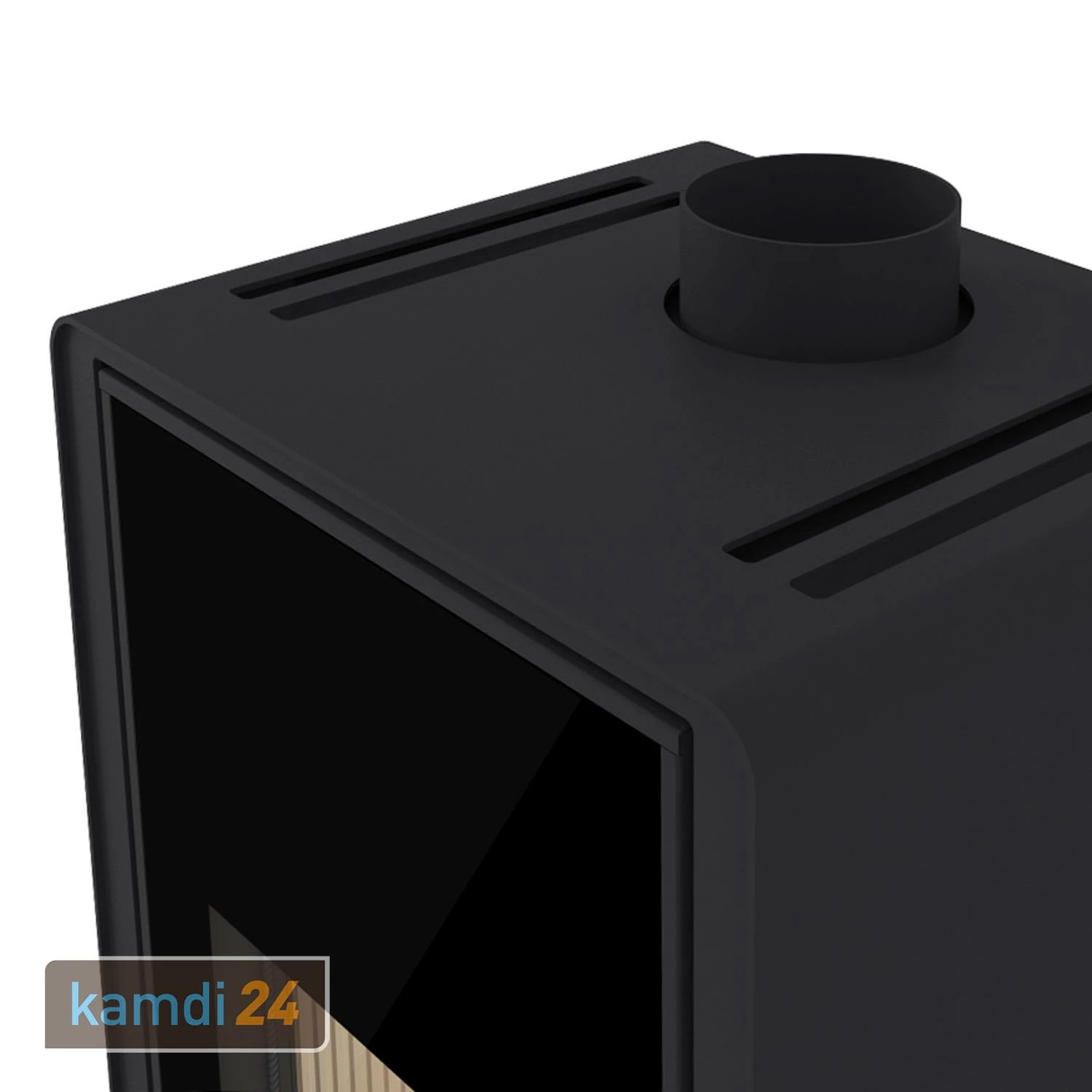 verfügt über einen Anschluss für externe Zuluft. Das ist im hinteren Teil des Ofens vormontiert und kann optional genutzt werden. Darüber bezieht der Kaminofen die meiste Luft, die er für den Verbrennungsprozess benötigt, von außen und nutzt nicht die Atemluft im Aufstellraum. Das System wird über ein einzelnes Kontrollelement gesteuert. Durch das kontinuierliche Ansaugen von Frischluft schützt es vor einer Verpuffung gasförmiger Elemente und gewährleistet eine hohe Effizienz und einen geringen Brennstoffverbrauch.