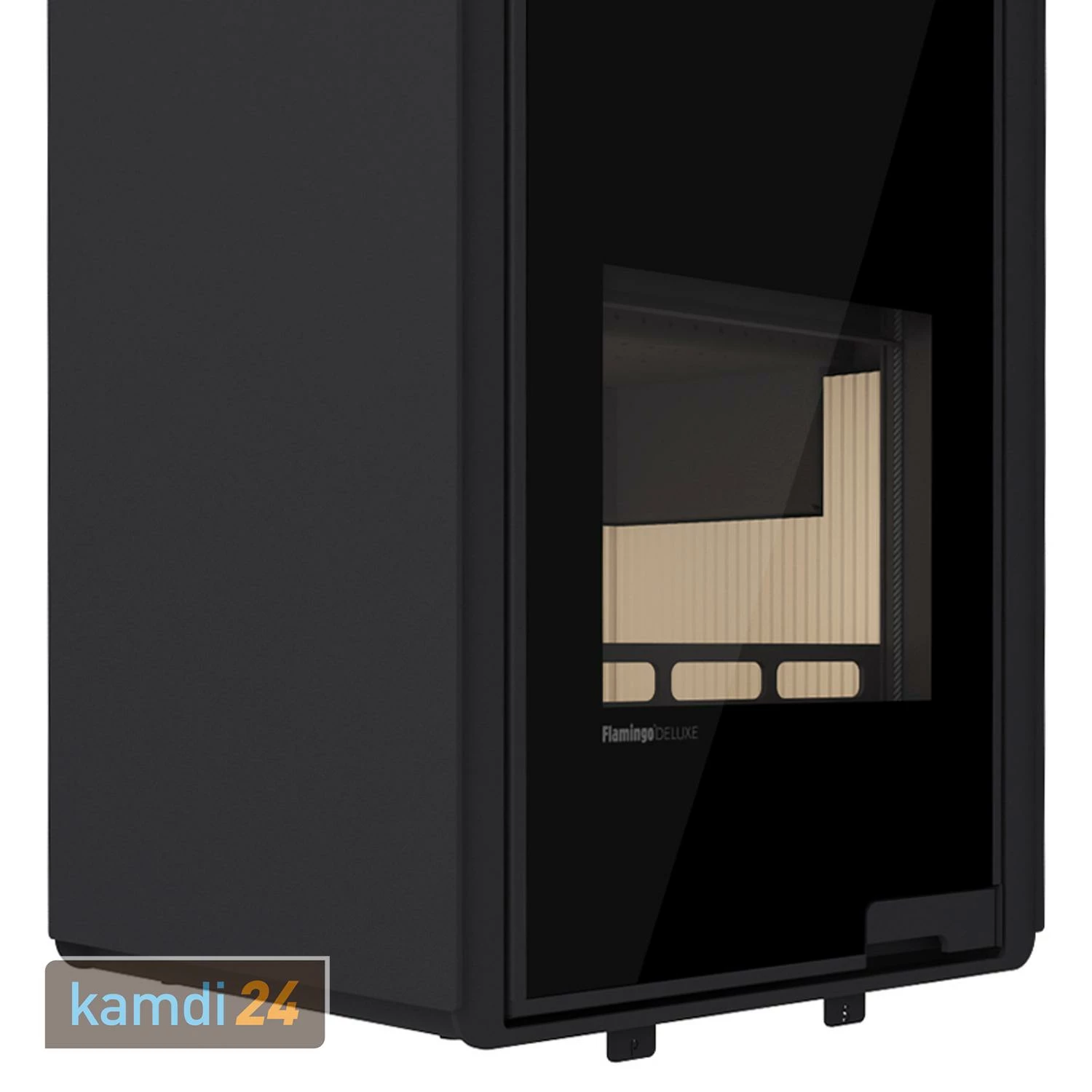ist mit nützlichen Details ausgestattet. Die Scheibe der Brennraumtür ist an den Rändern geschwärzt. Dadurch erhält der schicke Ofen eine edle Optik. Die integrierte Scheibenspülung sorgt dafür, dass Sie lange einen ungetrübten Blick auf die Flammen genießen. Die Brennraumdichtung ist sehr langlebig, wodurch sie nicht jede Saison erneuert werden muss. Dank des Aschebehälters werden die Verbrennungsrückstände aufgefangen und können später leicht entfernt werden.