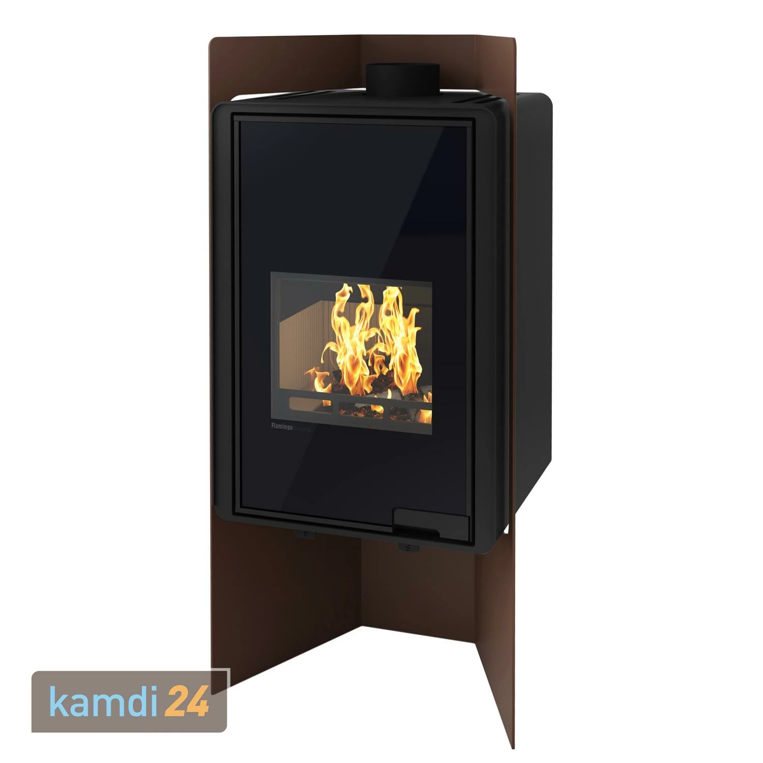 Der Ofen ist in einen Stahlhalter eingefasst, wodurch er ein ganz besonderes Highlight in Ihrem Aufstellraum wird. Insgesamt können Sie über unser Varianten-Menü aus sechs verschiedenen Farboptionen für den Halter wählen.