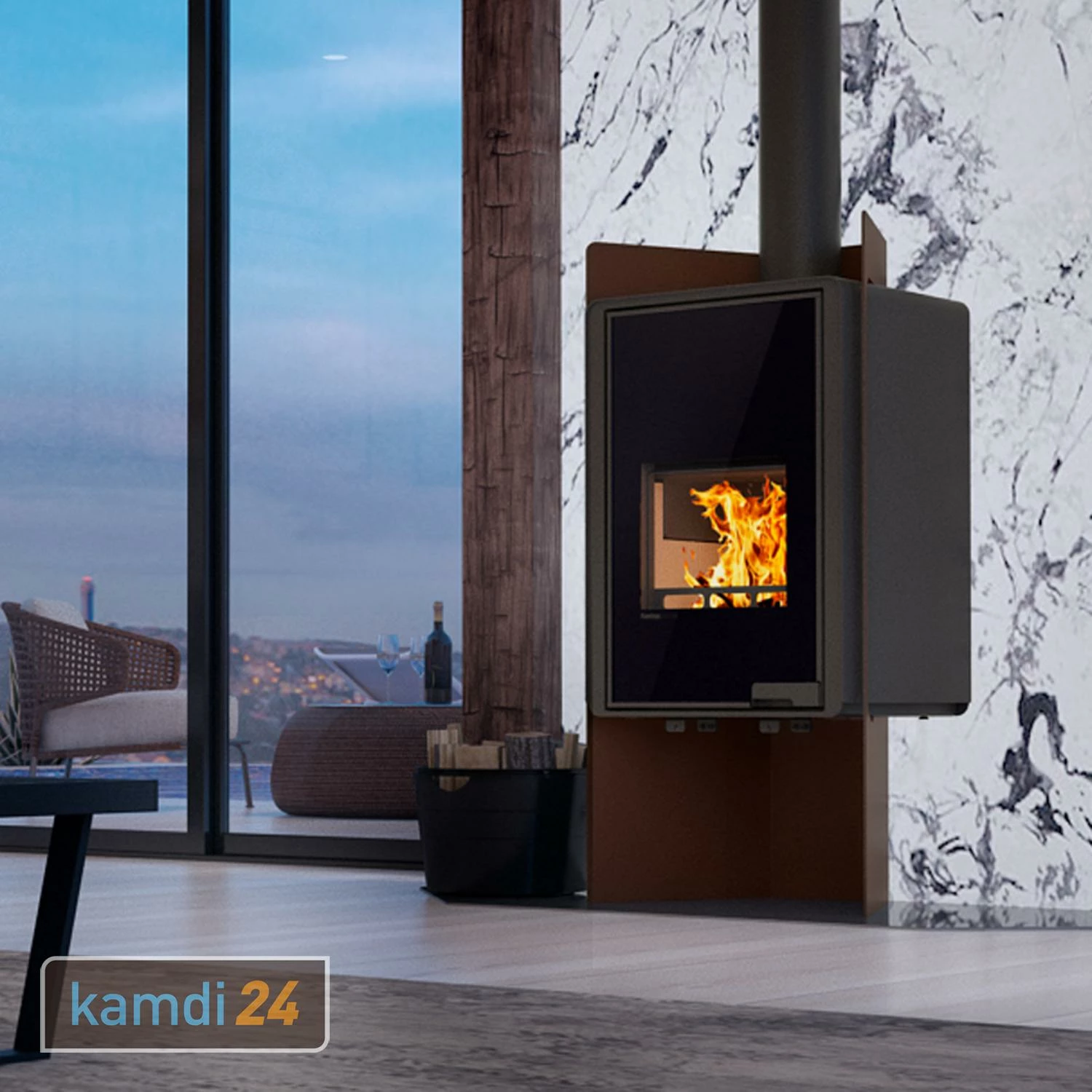 Der von ist ein 9 kW starker Holzofen. ist in einen Halter aus Stahl eingefasst, welchen es in unterschiedlichen Farben gibt. Der Ofen ist immer Stahl Schwarz. Diese außergewöhnliche Konstruktion wirkt modern und zeitlos und verleiht ihm Individualität.