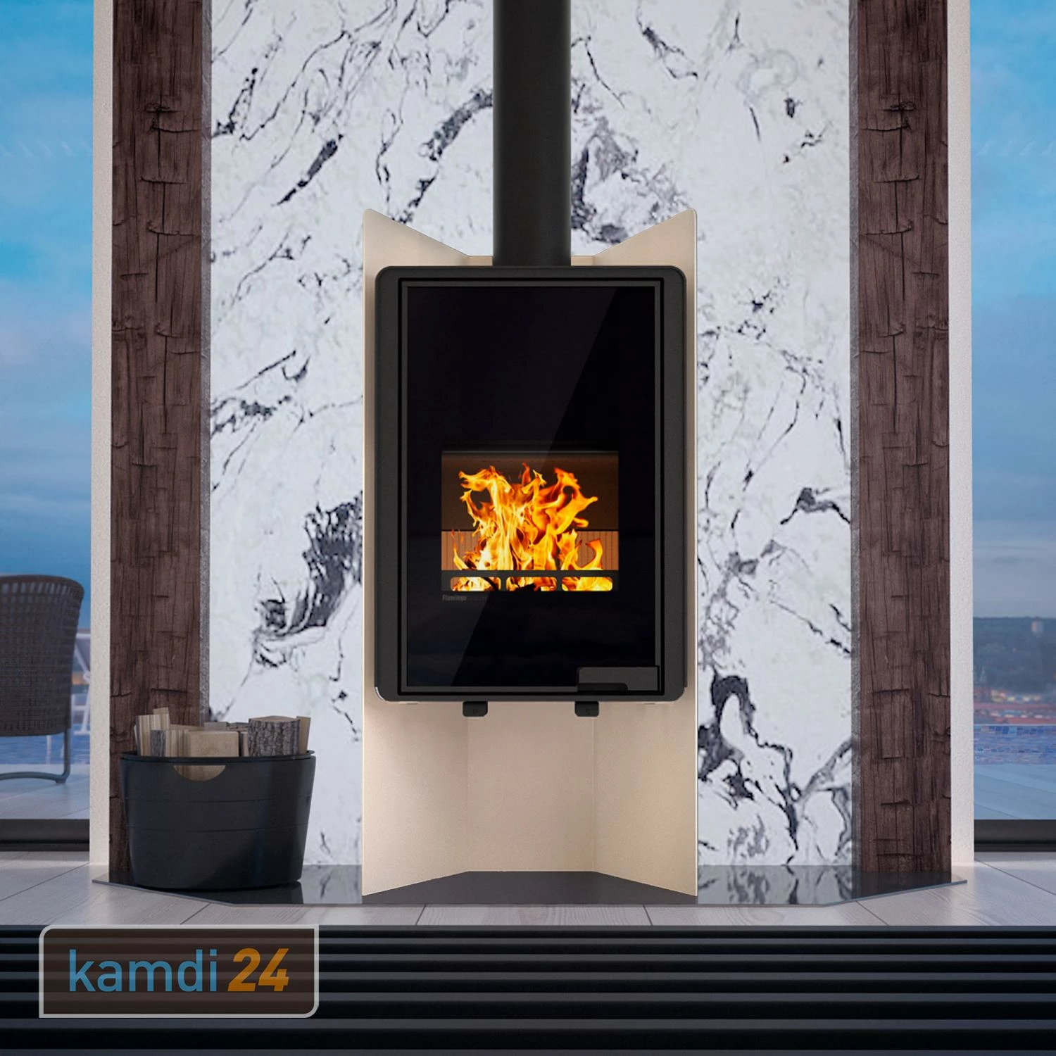 Der von ist ein 9 kW starker Holzofen. ist in einen Halter aus Stahl eingefasst, welchen es in unterschiedlichen Farben gibt. Der Ofen ist immer Stahl Schwarz. Diese außergewöhnliche Konstruktion wirkt modern und zeitlos und verleiht ihm Individualität.