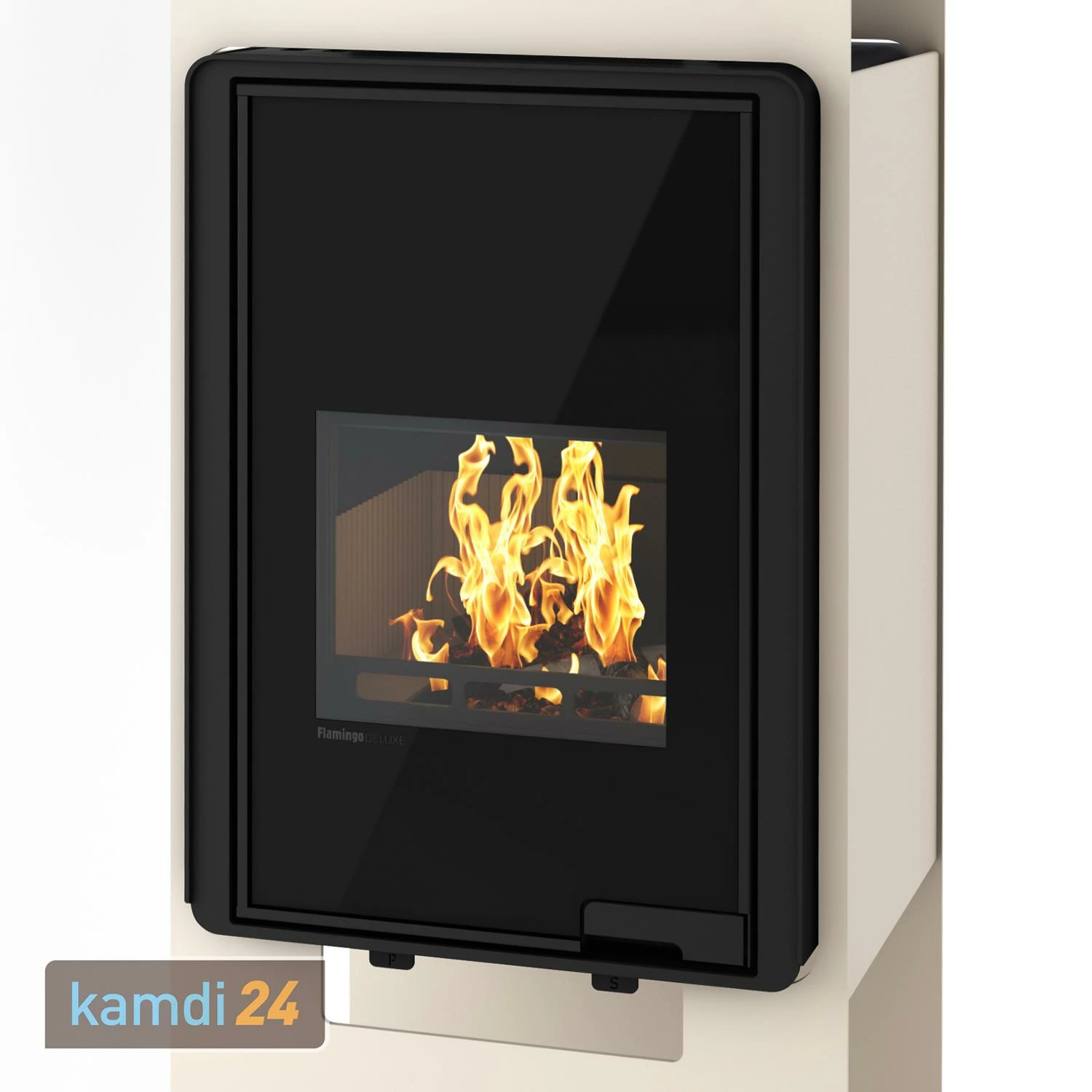 ist mit nützlichen Details ausgestattet. Die Scheibe der Brennraumtür ist an den Rändern geschwärzt. Dadurch erhält der schicke Ofen eine edle Optik. Die integrierte Scheibenspülung sorgt dafür, dass Sie lange einen ungetrübten Blick auf die Flammen genießen. Die Brennraumdichtung ist sehr langlebig, wodurch sie nicht jede Saison erneuert werden muss. Dank des Aschebehälters werden die Verbrennungsrückstände aufgefangen und können später leicht entfernt werden.