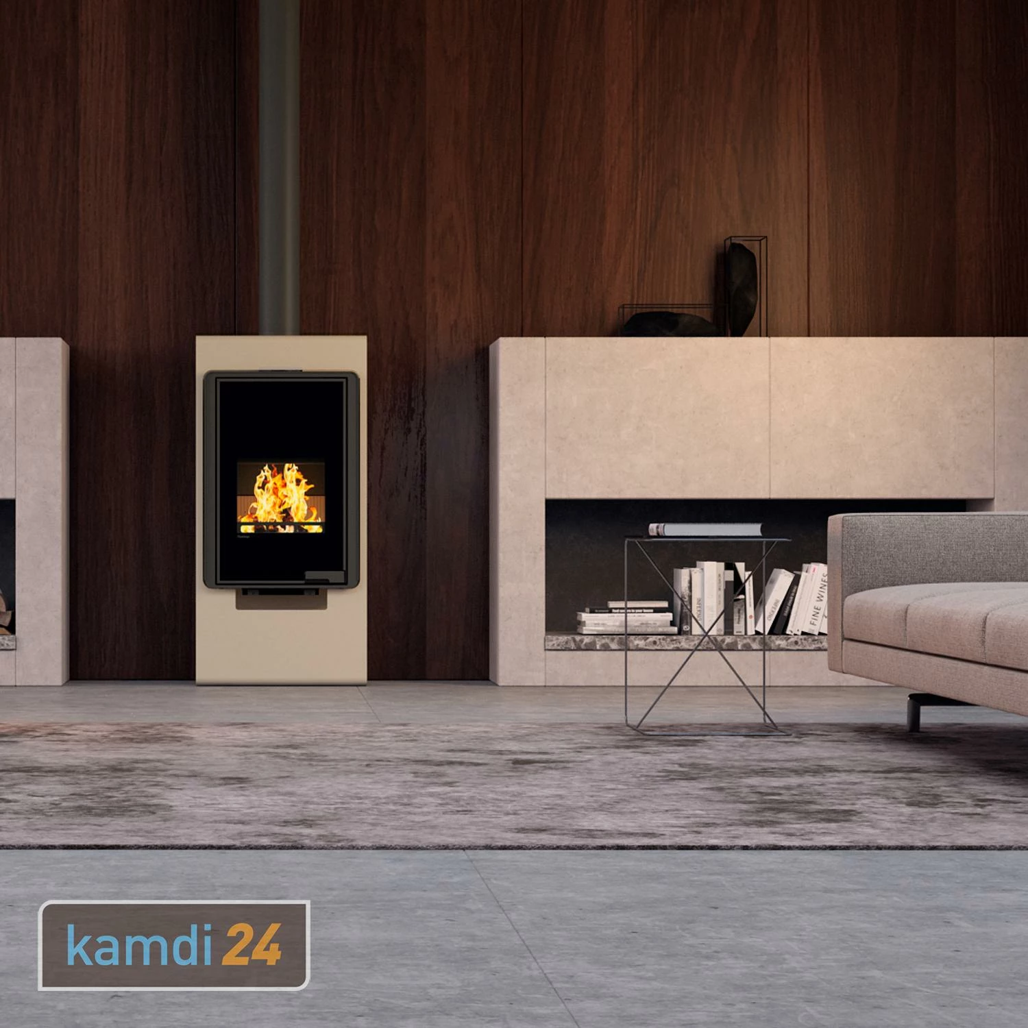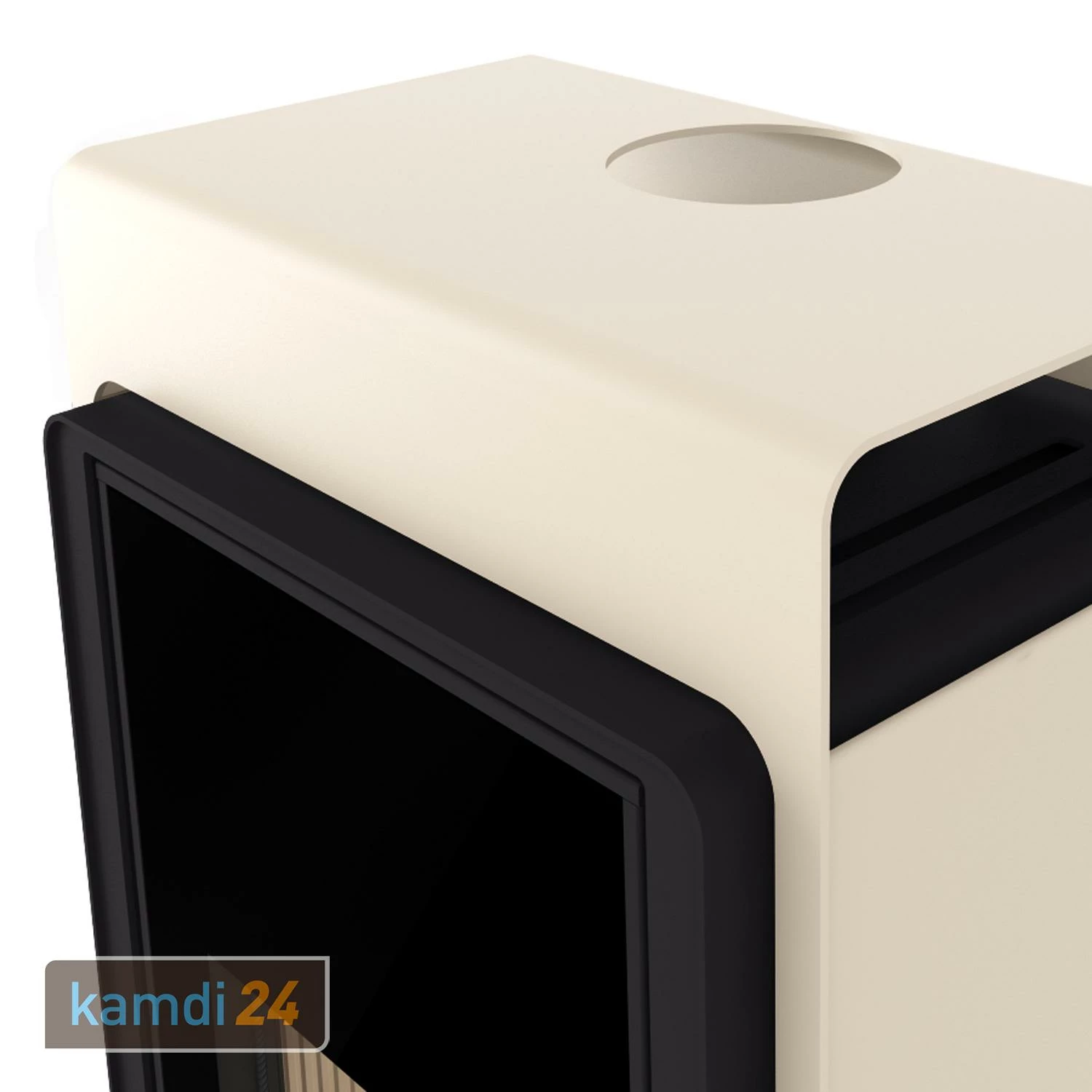 verfügt über einen Anschluss für externe Zuluft. Das ist im hinteren Teil des Ofens vormontiert und kann optional genutzt werden. Darüber bezieht der Kaminofen die meiste Luft, die er für den Verbrennungsprozess benötigt, von außen und nutzt nicht die Atemluft im Aufstellraum. Das System wird über ein einzelnes Kontrollelement gesteuert. Durch das kontinuierliche Ansaugen von Frischluft schützt das System vor einer Verpuffung gasförmiger Elemente und gewährleistet eine hohe Effizienz und einen geringen Brennstoffverbrauch.