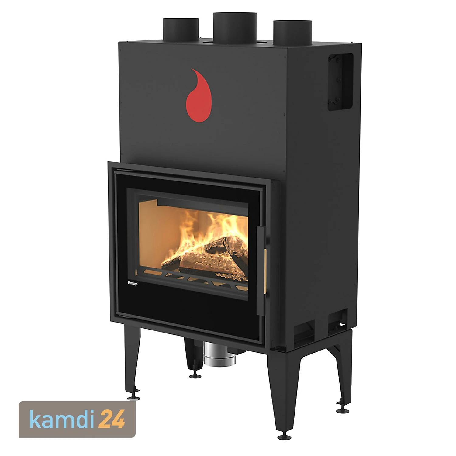Auf der Oberseite befinden sich zwei Anschlüsse links und rechts neben dem Rauchrohr zur Warmluftkanalisierung. Über diese können Sie die produzierte Wärme auch in angrenzende Räume leiten und so Ihr Haus effizient beheizen.