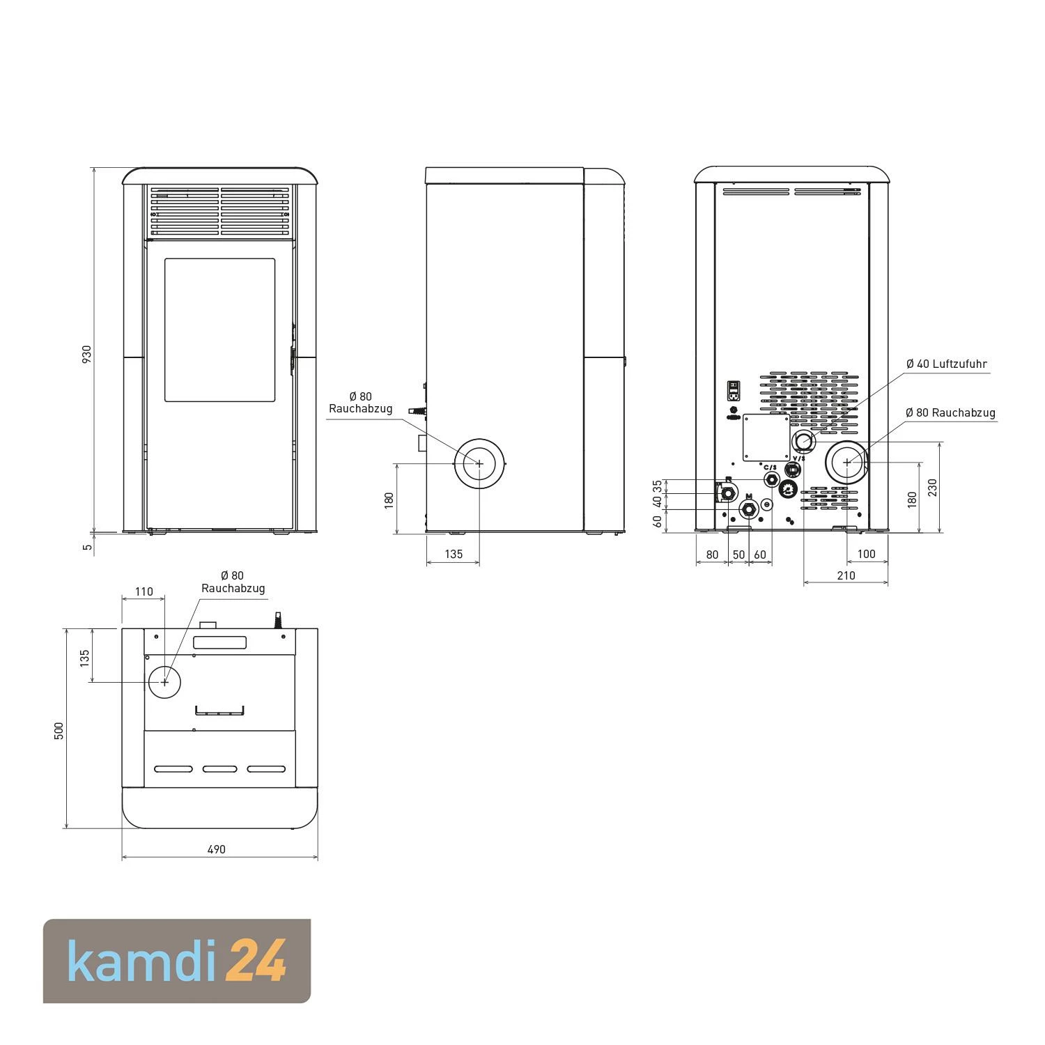 Der hochwertige Pelletkamin ist aus langlebigem Stahl gefertigt und mit Keramik verkleidet. Über das wählen Sie, ob Sie die Keramikverkleidung in Cremeweiß, Bordeauxrot oder in Grau bevorzugen.