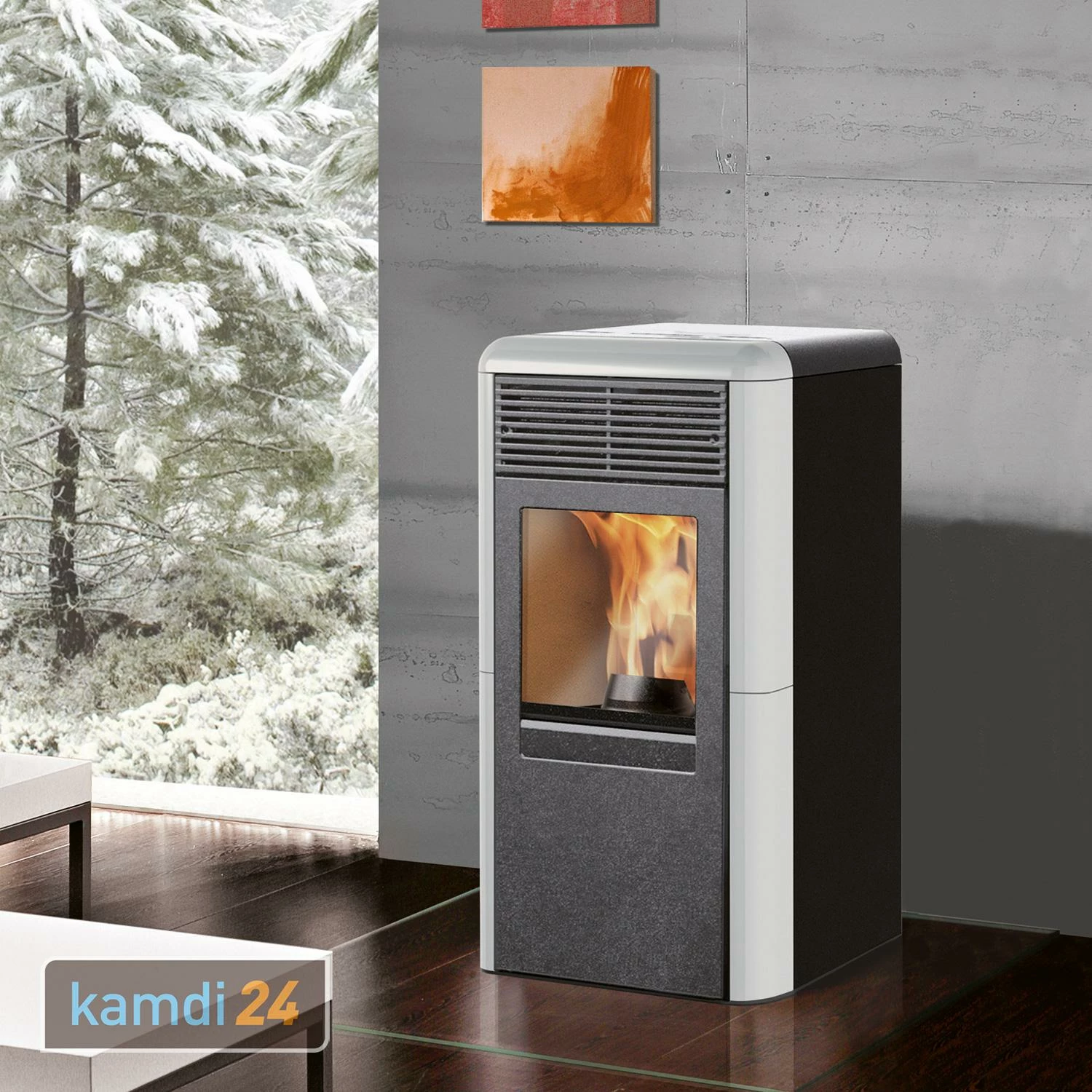Der hochwertige Pelletkamin ist aus langlebigem Stahl gefertigt und mit Keramik verkleidet. Über das wählen Sie, ob Sie die Keramikverkleidung in Cremeweiß, Bordeauxrot oder in Grau bevorzugen.