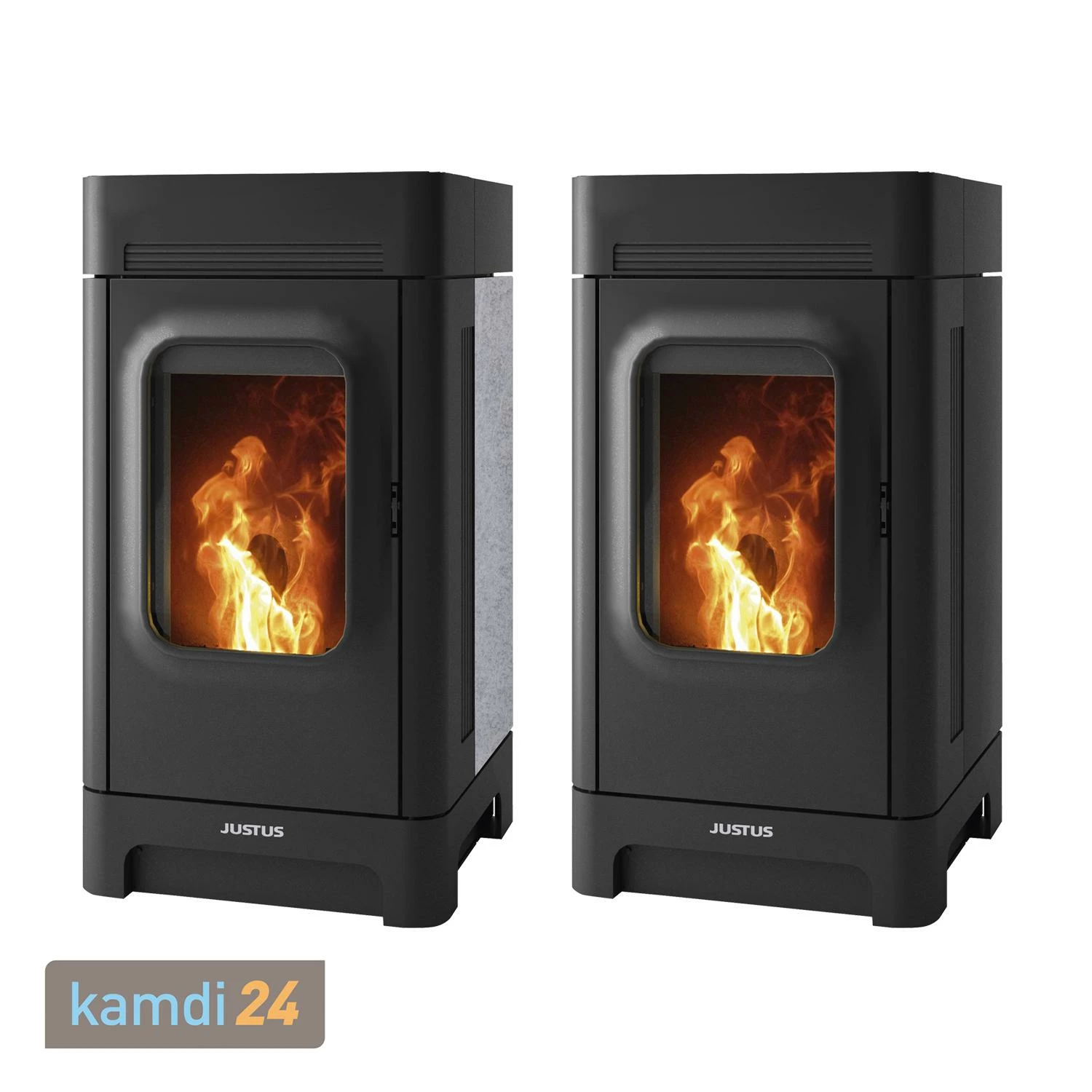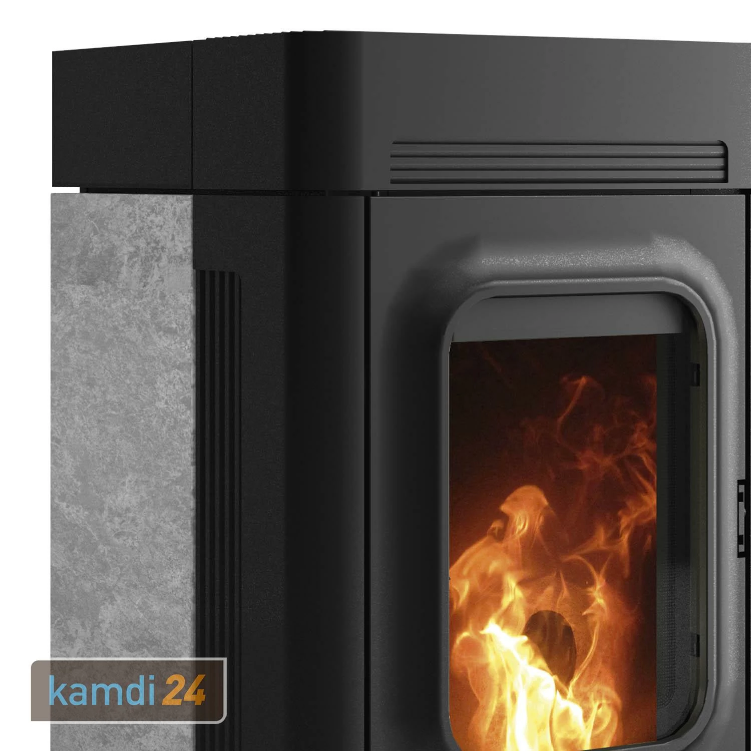 Über das Varianten-Menü können Sie zwischen einer Verkleidung aus schwarzem Stahl oder einer Verkleidung aus schwarzem Stahl und Speckstein wählen.