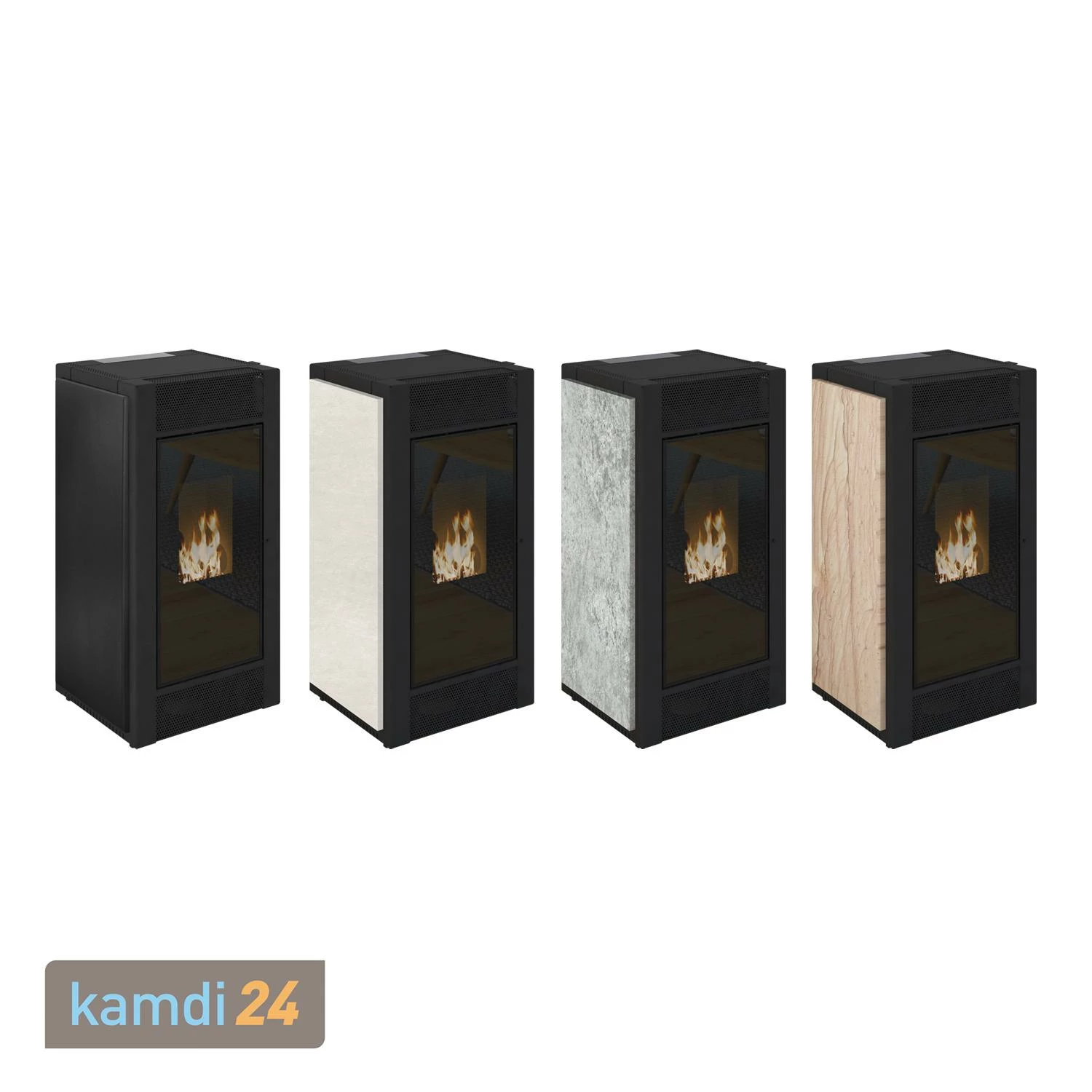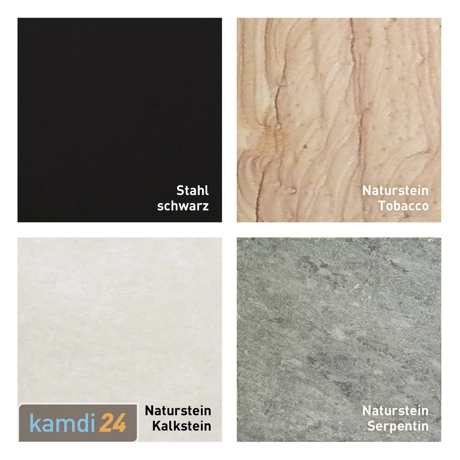 wirkt durch seine eckige Form und seinen Korpus aus schwarzem Stahl sehr modern. Den schönen Ofen können Sie ganz klassisch in Stahl Schwarz erhalten oder Sie haben die Möglichkeit, Lima mit verschiedenen Seitenverkleidungen aus Naturstein auszustatten. Über das Varianten-Menü können Sie ganz leicht den Ofen aussuchen, der Ihnen am besten gefällt.