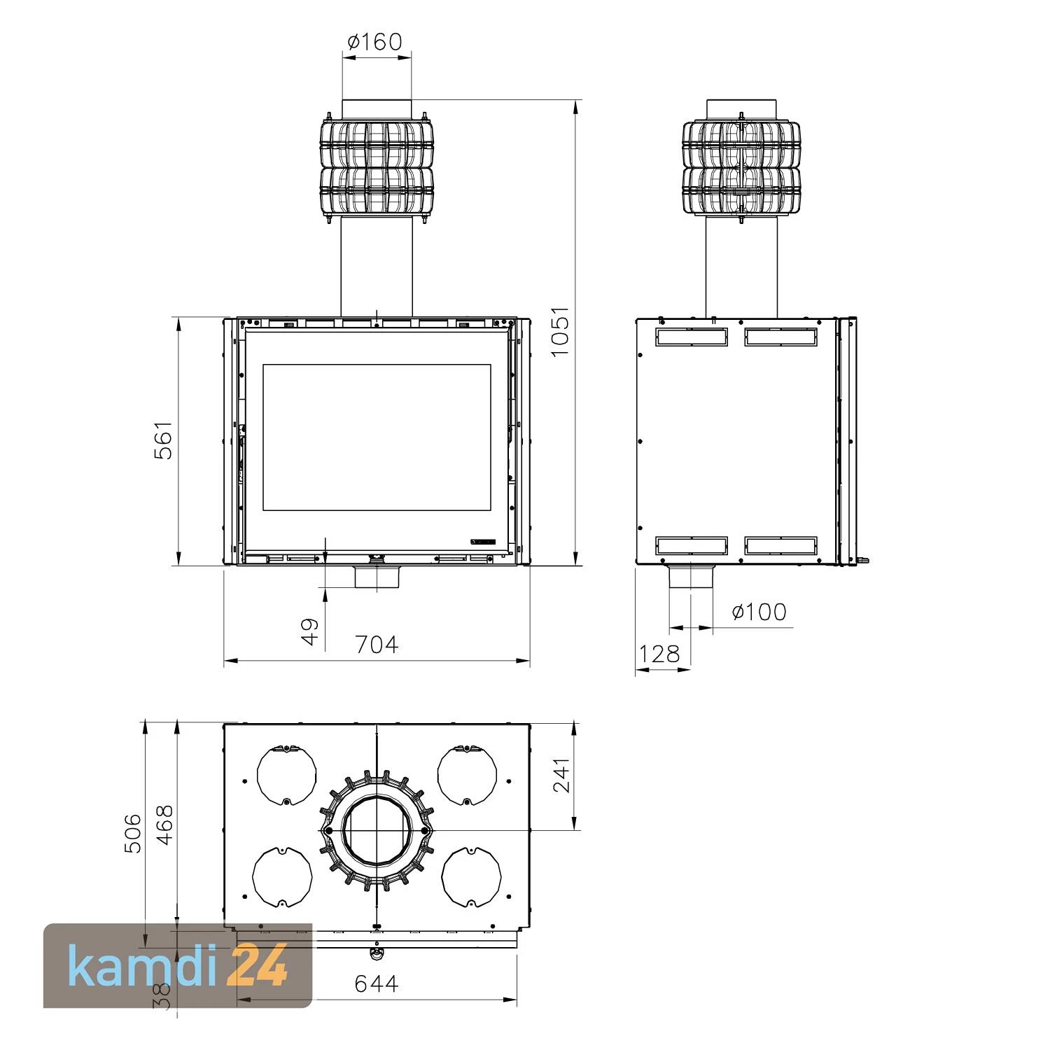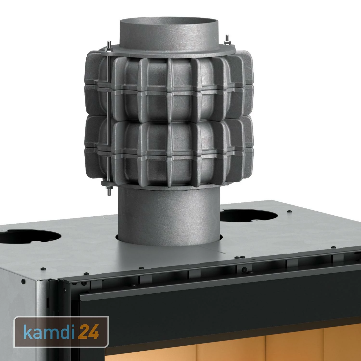 Auf der Oberseite von befinden sich zwei Anschlüsse zur Warmluftkanalisierung. Mit dem zusätzlich erhältlichen können Sie die produzierte Wärme entweder in den Aufstellraum oder in angrenzende Räume leiten und so Ihr Haus effizient beheizen.