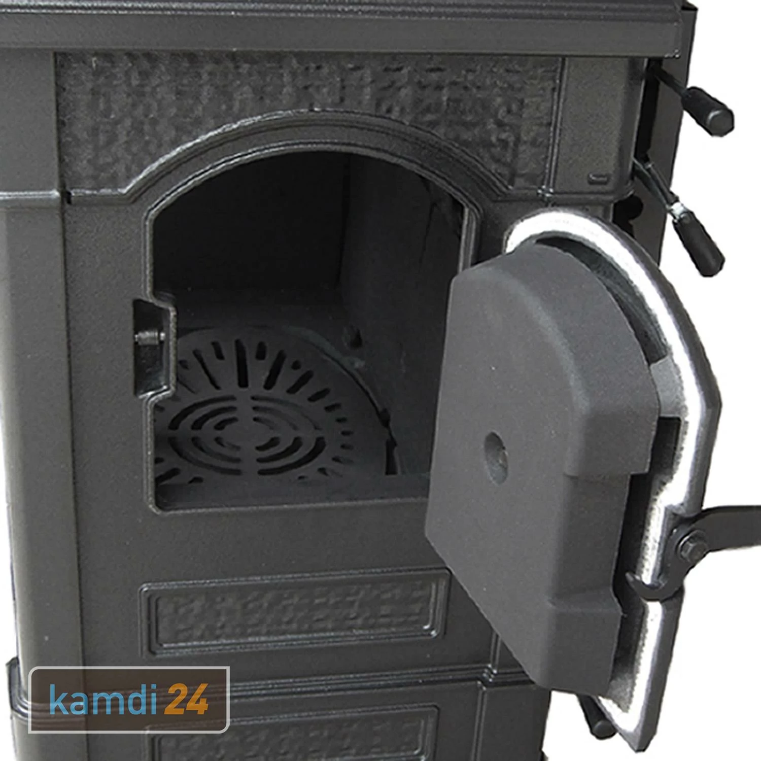 besteht komplett aus Gusseisen – das gewährleistet eine hohe Stabilität und Langlebigkeit. Zum Ausstattungsumfang gehört ein praktisches Aschefach zur einfachen Entleerung der Brennrückstände. Durch den lassen sich Asche und Verbrennungsreste mühelos zuvor vom Brennraum in den Aschekasten befördern. Die sorgt für einen stets ungetrübten Blick auf das Flammenspiel. Damit Sie dieses auch über längere Zeiträume ohne Unterbrechung genießen können, verfügt der Ofen über eine , welche das regelmäßige Nachlegen von Brennholz erleichtert.