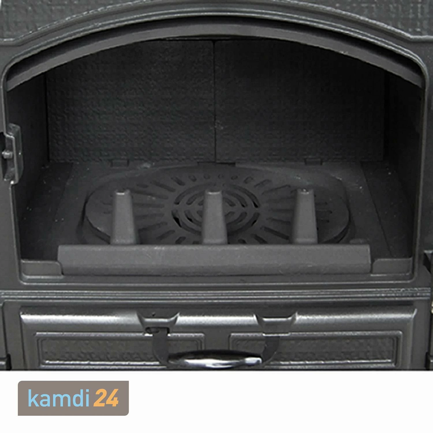 Durch die separate gusseiserne Tür können Sie das noch glühende Aschebett mit neuem Brennholz versorgen, ohne die große Brennraumtür an der Vorderseite des Kaminofens zu öffnen.