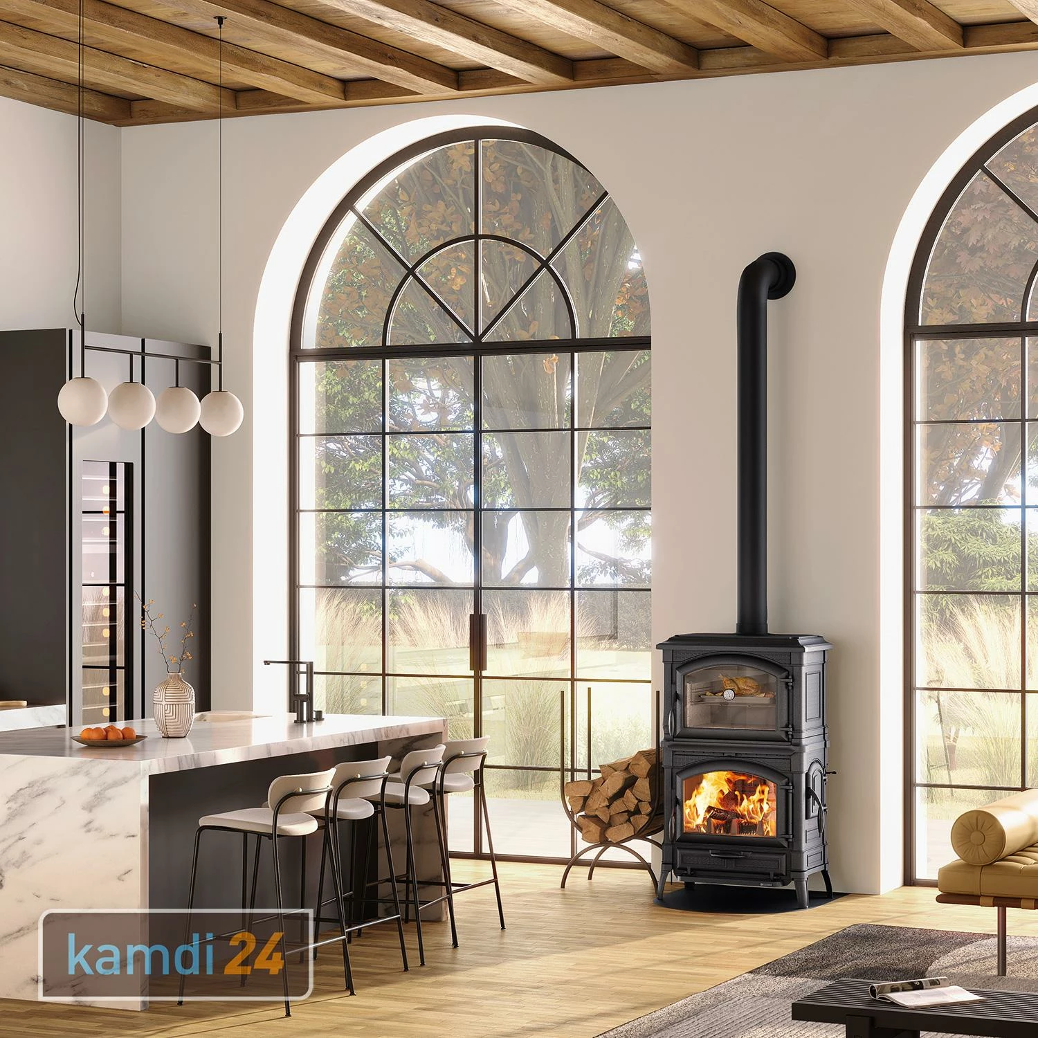 Der von präsentiert sich im rustikalen Design. Er überzeugt durch Funktionalität und Technik auf höchstem Niveau: Mit einer Leistung von heizt der Holzofen mühelos Räume bis zu . Korpus und Brennraum bestehen aus Gusseisen – das gewährleistet eine hohe Stabilität und Langlebigkeit. Im , das sich auf einer angenehmen Arbeitshöhe befindet, können Sie die Verbrennungswärme auf schmackhafte Weise ausnutzen und Brot, Kuchen oder Auflaufgerichte zubereiten.